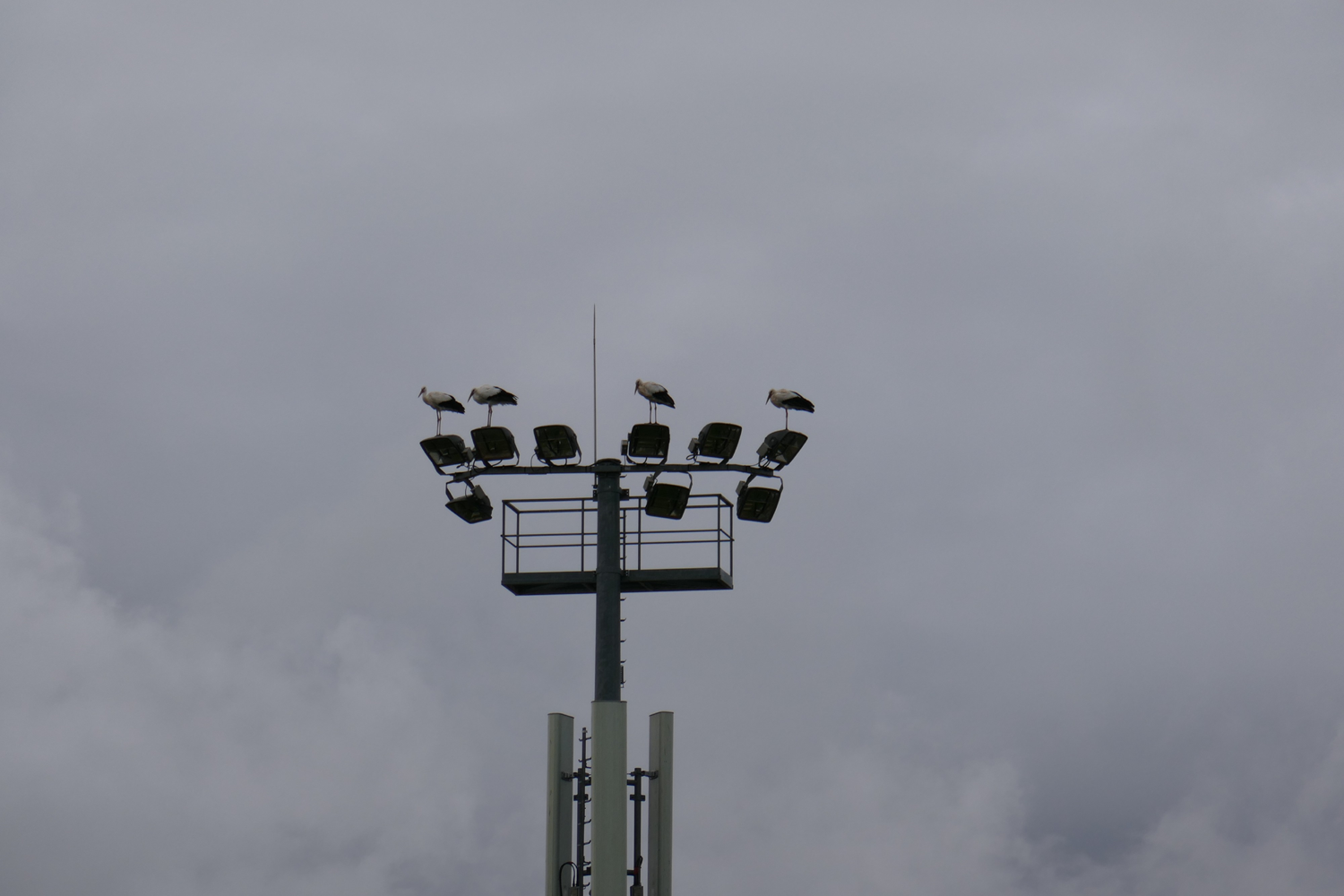 Au total 22 cigognes se sont posées sur les 6 lampadaires du stade.