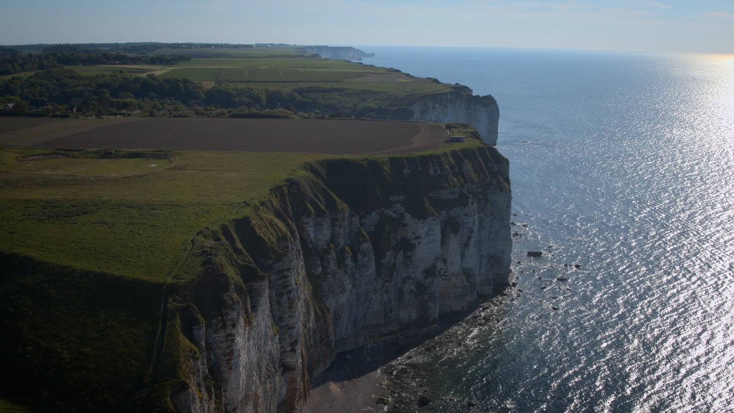 The Côte d'Albâtre (Alabaster Coast) extends over nearly 80 miles (130 km). Its wild cliffs delimit the Pays de Caux from Le Havre (west), drop at Dieppe, and go up to Petit Caux, at Le Tréport (east). The coast has been listed as Natura 2000 since 2009. The cliffs alternate between layers of hard flint, yellowish marl, and milky chalk that melt in the water. Erosion leaves flint pebbles on the foreshore that long served as building materials for the Normans. Once powdered, they are also used in the manufacture of porcelain or as an additive to toothpaste.