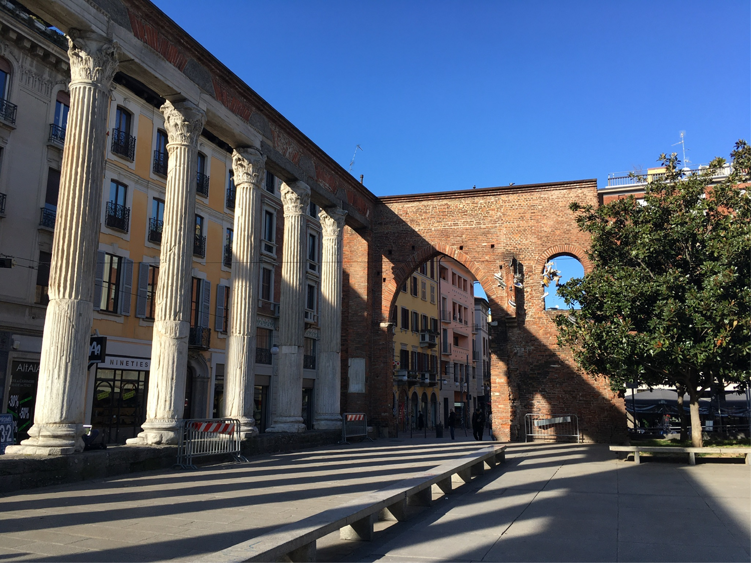 Les colonnes San Lorenzo à Milan proviennent à l'origine d'un temple ou de thermes publics du IIe siècle. Elles colonnes furent élevées à leur emplacement actuel au IVe siècle.