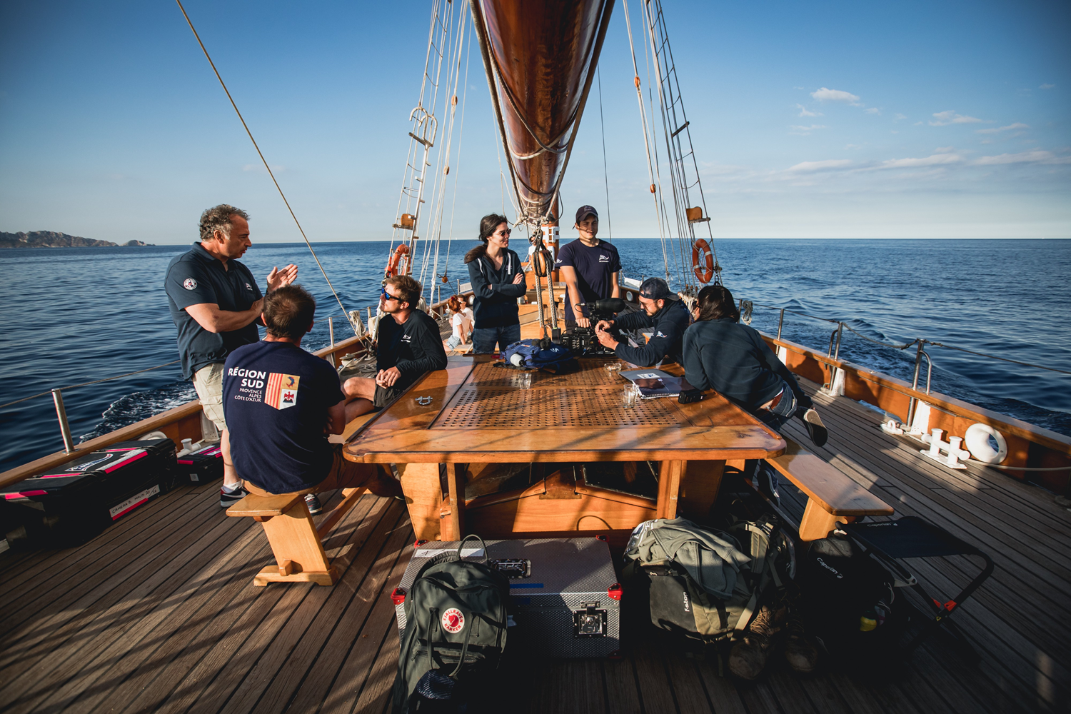 A former German patrol boat (Kriegsfischkutter) built in 1947, the Don du Vent was transformed into a pleasure sailboat at the end of the 1950s. Moored in Cannes in the 1960s and 1970s, she hosted numerous personalities during the film festival before being bought by Philippe and Margo Derain and joining Marseille, where she was restored for 13 years. All her superstructures (deck, planks, rigging, interior fittings) have been recreated in the style of the original KFK. Today, the Don du Vent belongs to the painter Fanny Moreaux and her companion, the skipper Benoit Bouchet, and features a large slatted deck in Oregon pine and a spacious saloon with mahogany woodwork.