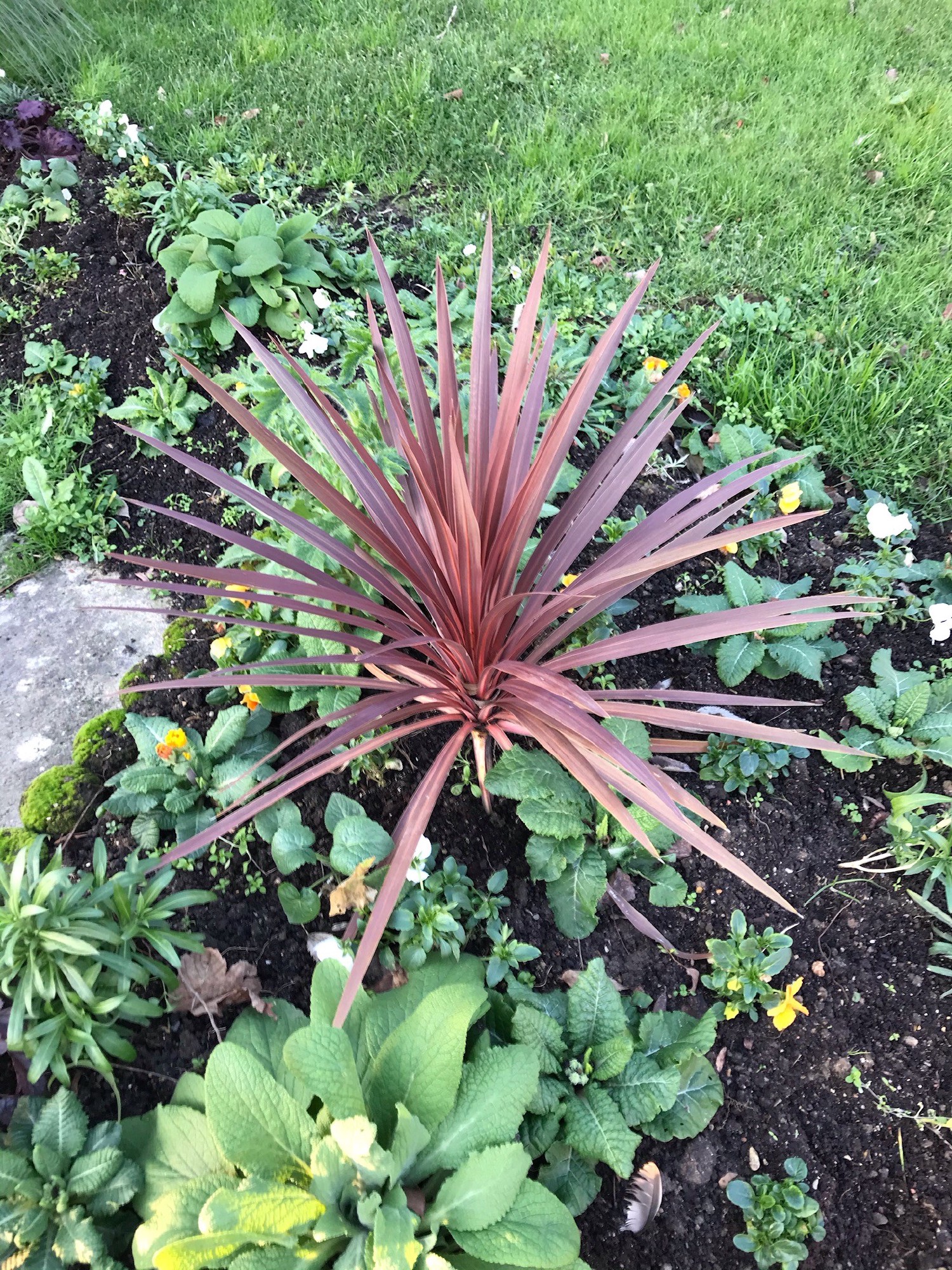 La Cordyline 'Red Star' est un arbuste original pour climat doux, originaire de l'hémisphère austral. Connu sous le nom de faux Dracaena australis 'Purpurea', c'est un magnifique arbuste exotique à fleurs blanc rose parfumées dont l'aspect rappelle celui du palmier. Parc de la Perraudière de Saint-Cyr-sur-Loire ( Indre et Loire )