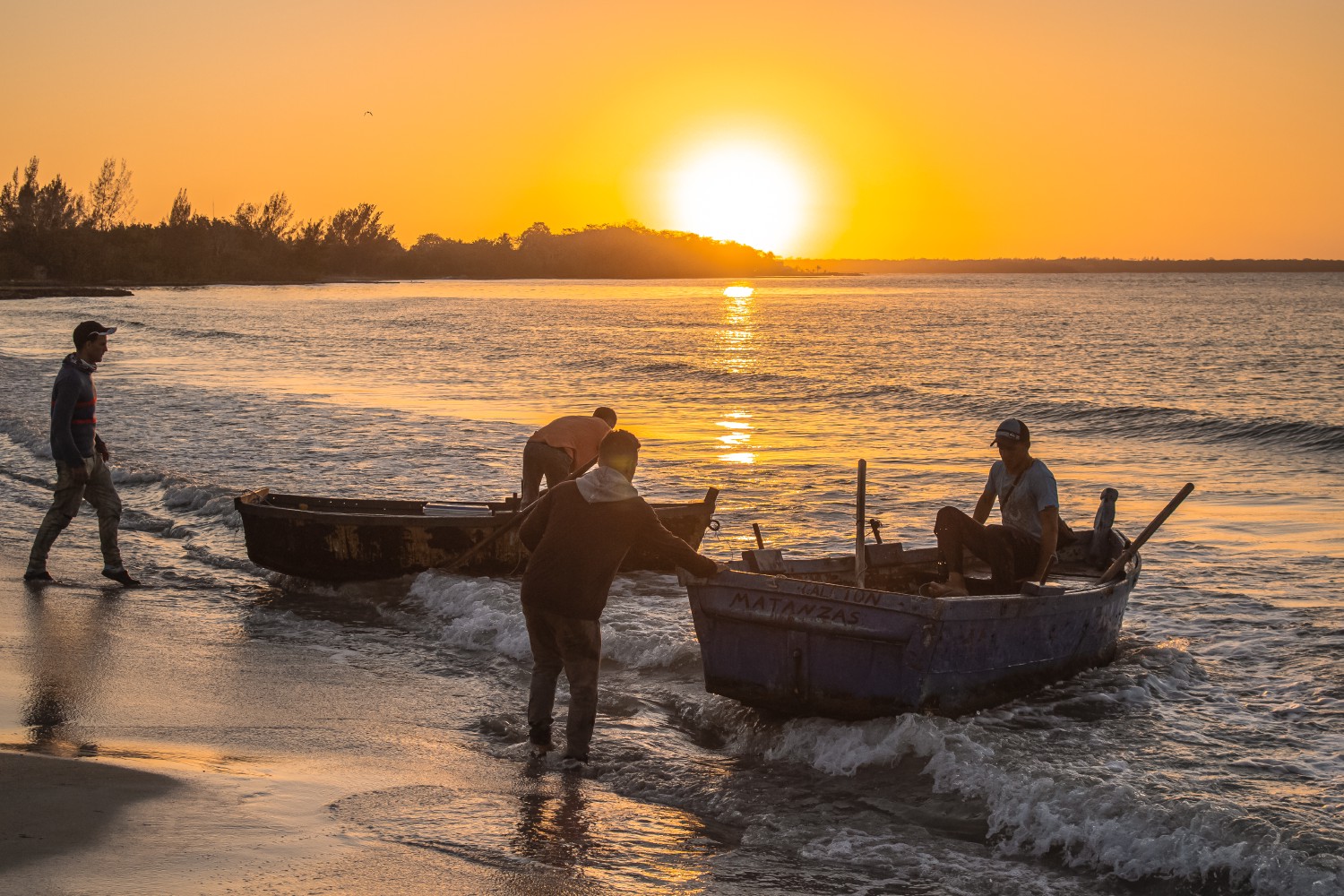 Cuba Early morning and the fishers are out to work using their aged boats.