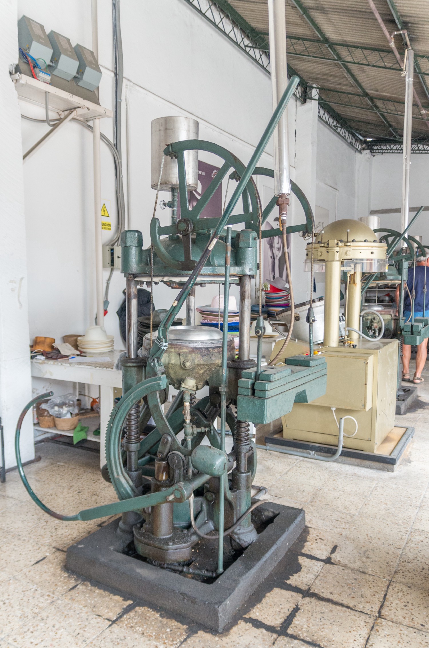 Presse à vapeur pour la mise en forme des panamas.