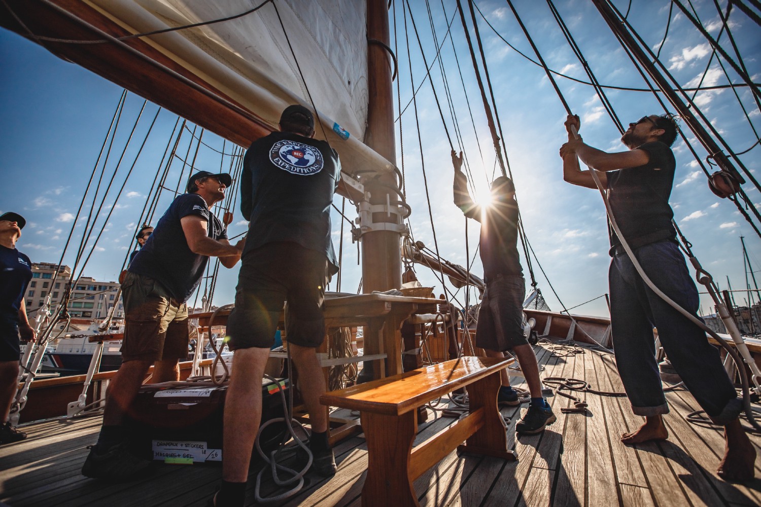 The Don du Vent is an auric ketch from 1947 belonging to the series of 612 war fishing coasters, the KFK (Kriegsfischkutter), built by the German Navy between 1942 and 1948. Moored at the Quai d'Honneur of Marseille's Vieux-Port (Old Port) since its acquisition in 1979 by Philippe Derain, the boat now belongs to the painter Fanny Moreaux and her companion, the skipper Benoit Bouchet. The couple rents it for sea trips, cruises, and events.