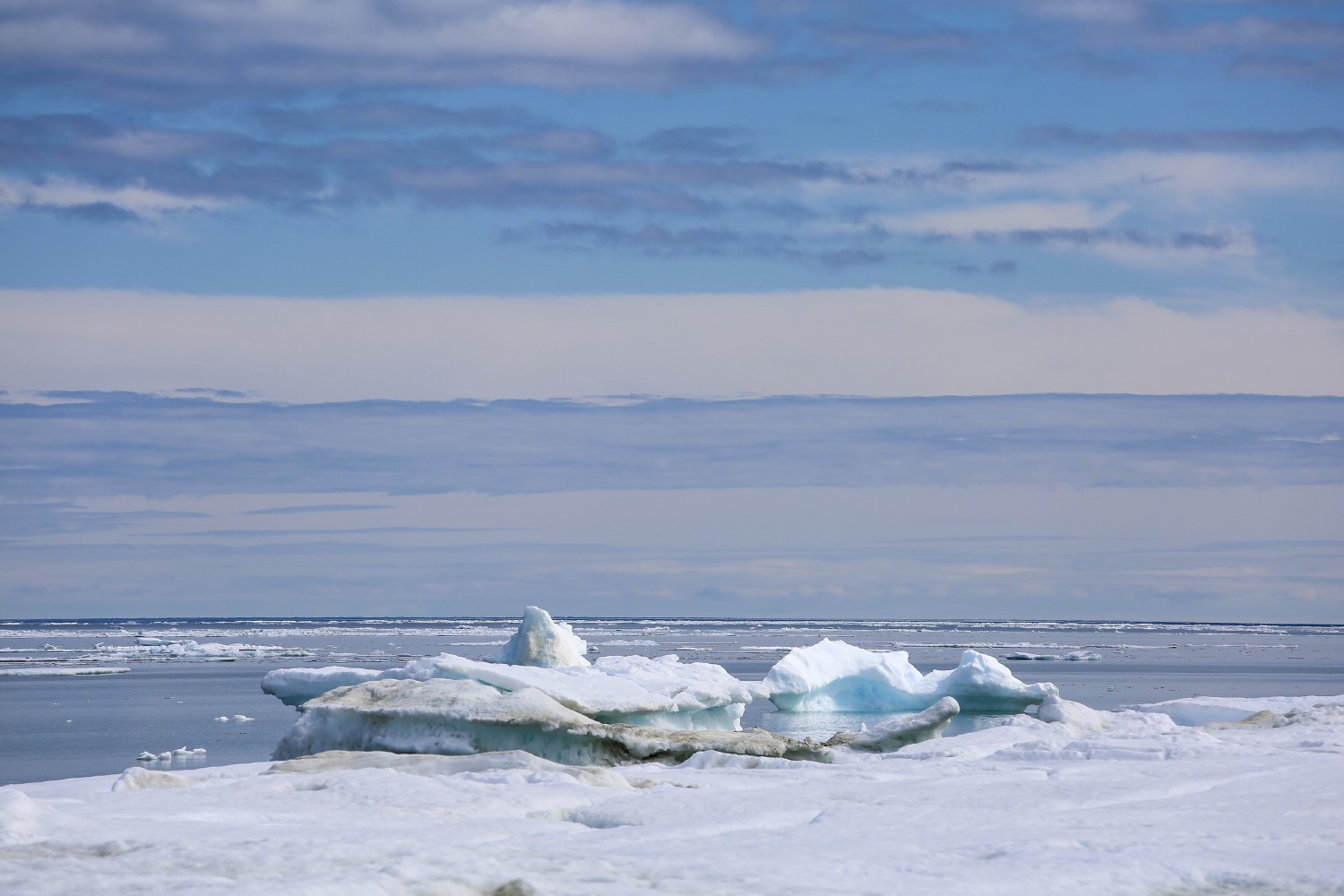 In summer, the sea ice melts in the Arctic. More or less large icebergs then litter the surface of icy waters and drift under the influence of sea currents and winds. When temperatures decrease, these ice blocks can be taken prisoner by the fast ice, creating irregularities within this huge ice cover.