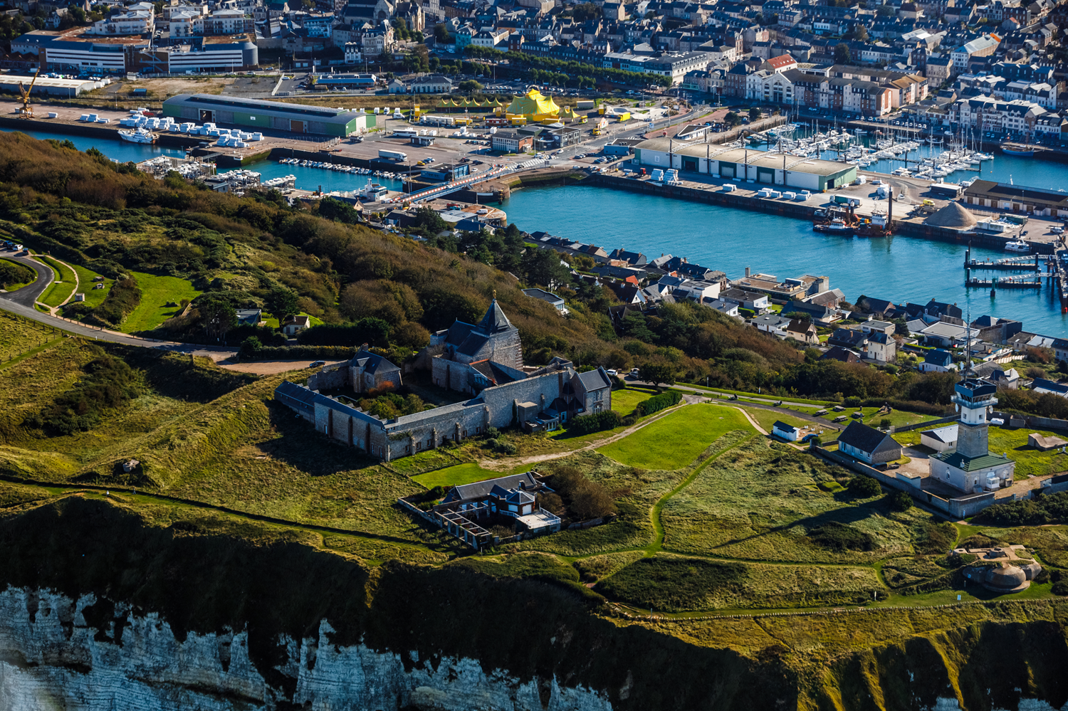 In the 11th century, Robert the Magnificent, Duke of Normandy (1027-1035), survived a shipwreck and built a small chapel dedicated to the Virgin. Remodeled and enlarged from the 13th century, it is part of the Priory of Bourg-Beaudouin and depends on Sainte-Trinité Abbey in Fécamp. After the French Revolution, the chapel became Notre-Dame-du-Salut (Our Lady of Salvation). Destroyed by German bombings in 1942, its bell tower was rebuilt and adorned with a golden Virgin and Child. Not a fishing boat leaves the port of Fecamp without having sounded the trumpet three times in honor of the Virgin of Cap Fagnet.