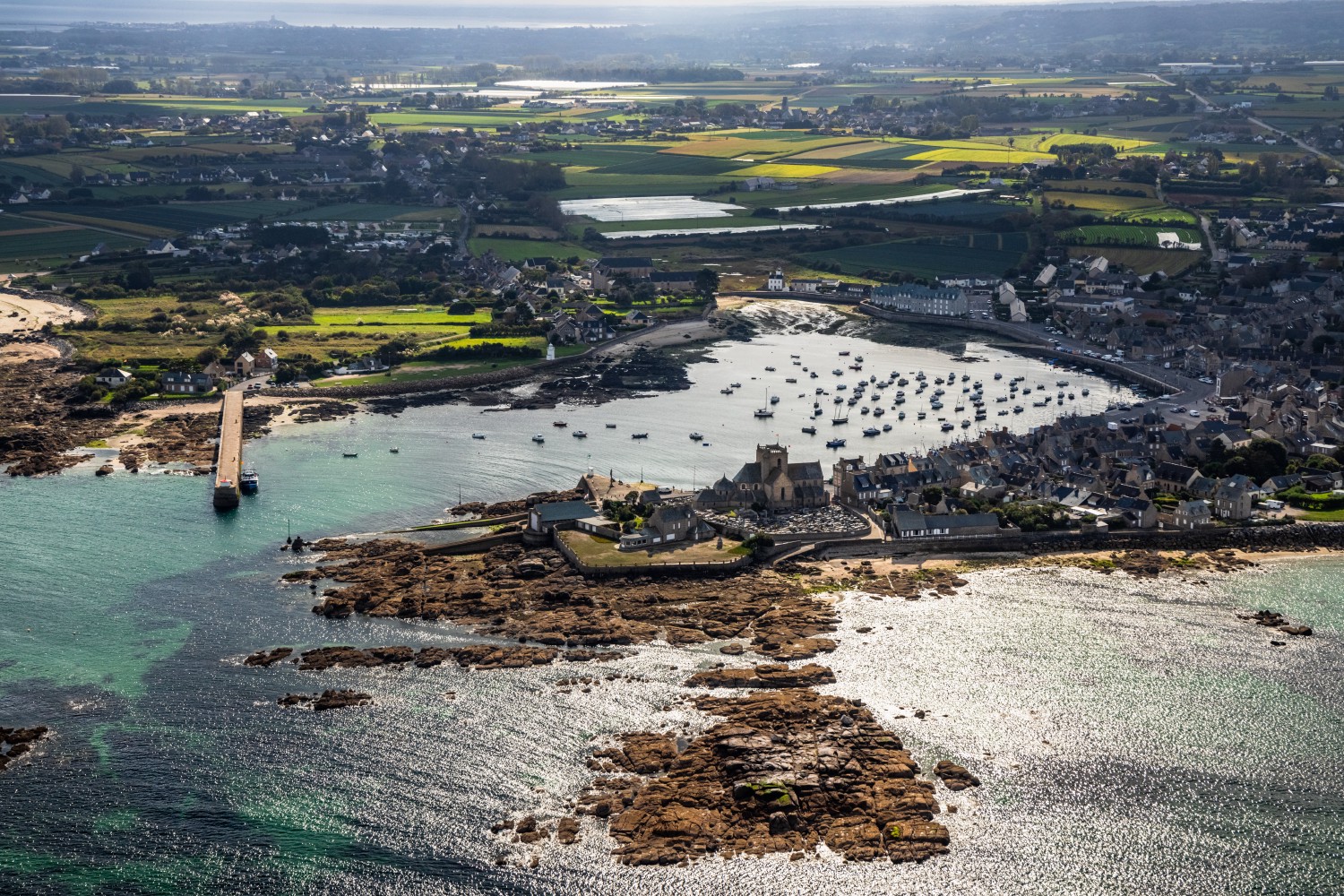 Hercynian granite rocks outcrop on each side of the small harbor of Barfleur. The channel is delimited by flashing buoys that signal the rocks to avoid, and two lighthouses mark the entrance to the port itself. That of the west pier is 26 ft (8 m) high, while that of the east pier rises to 13 ft (4 m). They both have a range of 6 nautical miles. Extending over 148 acres (60 ha), Barfleur is the smallest town in the Manche department, but it is also listed among the Most Beautiful Villages of France.