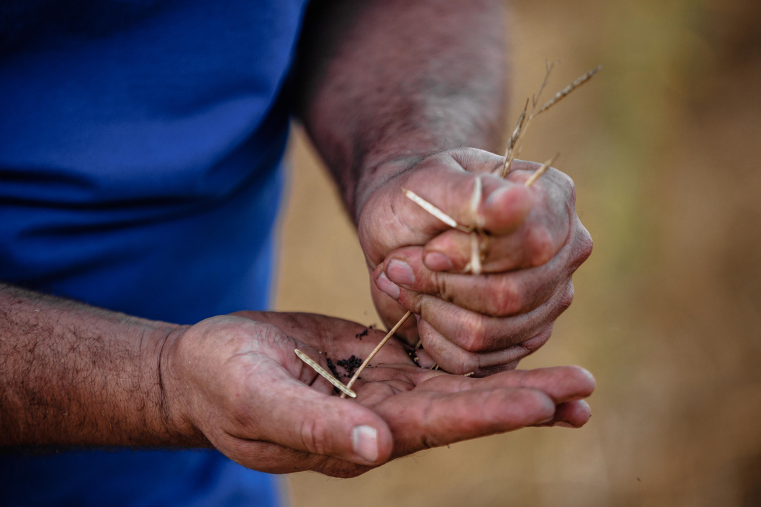 Mustard pods or siliques open when fully ripe. They contain round oilseeds of very small size (about 0,03 inch / 1 mm in diameter) and covered with a crunchy skin. The number of seeds per pod varies by species: brown mustard pods typically contain up to twenty seeds while yellow mustard pods hold around six. Mustard seeds are rich in protein, antioxidants, and oil (more than 35 %) but also in glucosinolates (≈ 120 µmol/g) and sinigrin.