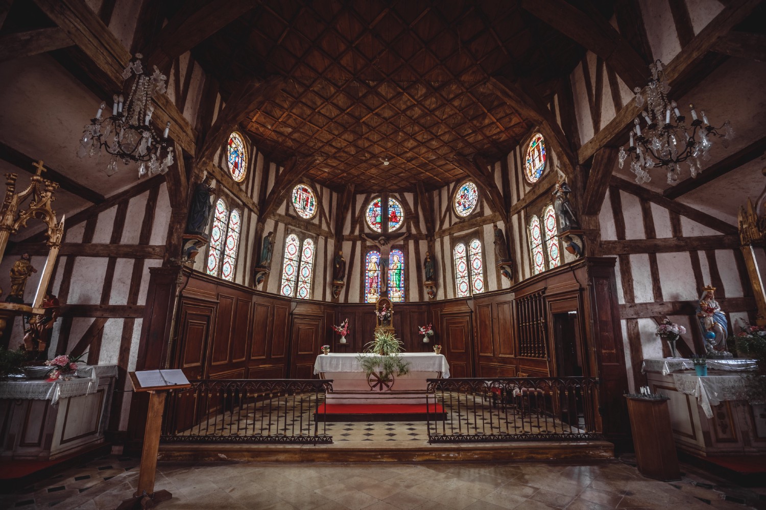 The church of Saint-Jacques-et-Saint-Philippe (St. James and St. Philip) in Lentilles is built in the half-timbered style of the houses in the north of the Aube department. Built in the 16th century, it was restored in the 1970s. The church consists of a four-bay nave flanked by side aisles. The five-sided choir features oculi with 16th century stained glass windows. The most striking feature of the interior is the continuous panelled ceiling decorated with rhomboid tabs. The ceiling was covered with a false plaster vault in the 19th century and was restored to its original appearance.