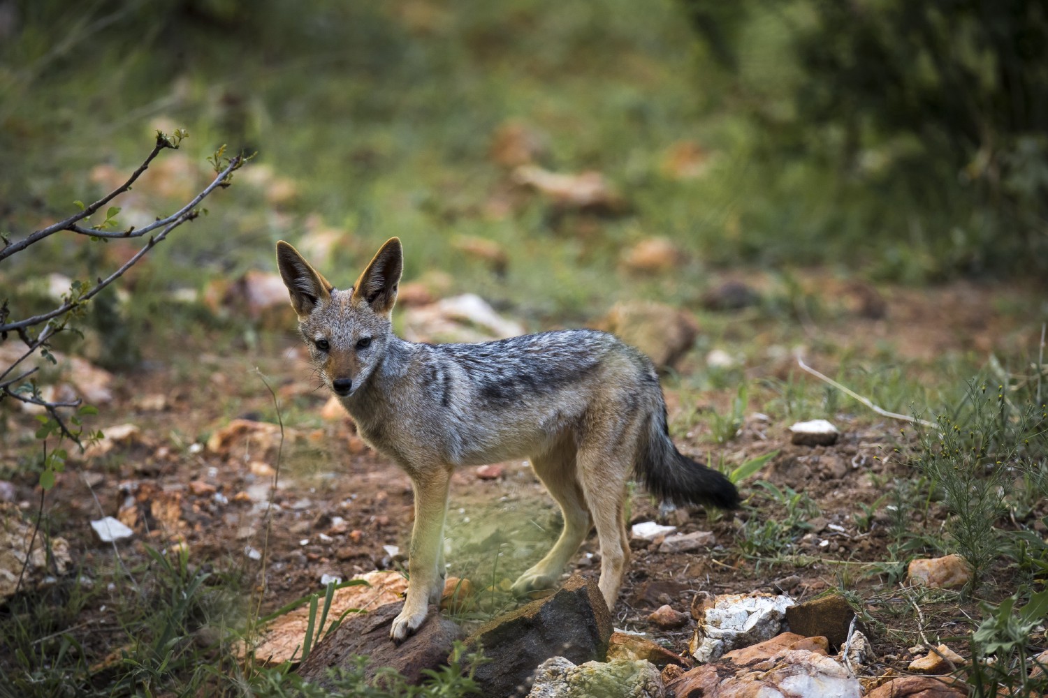 The contrast between its relatively small muzzle and its big ears gives the black-backed jackal its distinctive look. Almost as developed as those of the fennec, these highly mobile ears provide it with precious hearing to spot preys and predators, especially at night or when tall grass prevents it from seeing around.