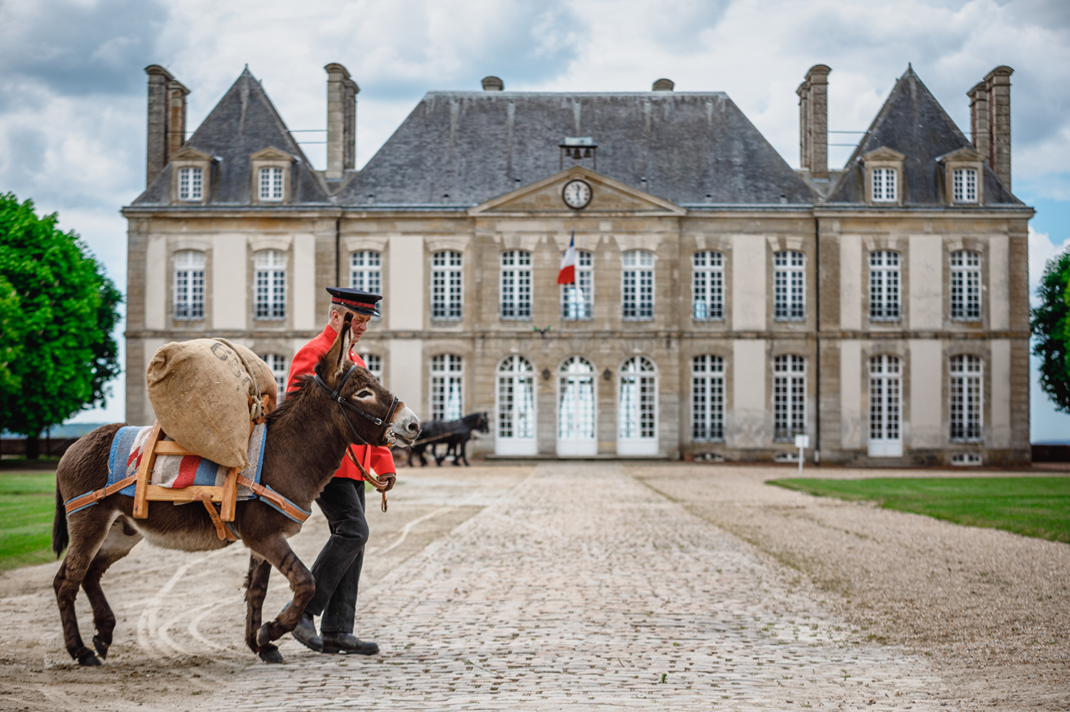 Of the seven French breeds of donkeys, two (the Norman and the Cotentin donkeys) are represented at the Norman Equidae Conservation Center of the Haras National du Pin (photo). Essential agricultural workers in Normandy in the last century, these donkeys are now endangered in France, where only 800 Norman donkeys and up to about 2,000 Cotentin donkeys remain. The two breeds were recognized on August 20, 1997, and their criteria defined by stud books are confirmed each year in the Pin and Saint-Lô national stud farms. Physically, the two heritage breeds of Normandy are alike: they are small, stocky donkeys marked with the cross of Saint Andrew. The Cotentin donkey is slightly larger and lighter in color than the Norman, and its mane is straight like that of the zebra.