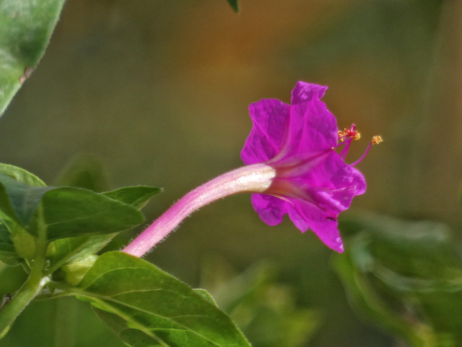 A lo largo del verano y el otoño, el Mirabilis jalapa produce sin cesar flores de tonos vivos —uno solo, dos o una mezcla en pinceladas—, en forma de pequeñas trompetas con un largo tubo. Una curiosidad de esta planta es que en el mismo pie pueden surgir flores de distintos colores. Se abren cuando no hace sol: desde el atardecer al amanecer o los días nublados.