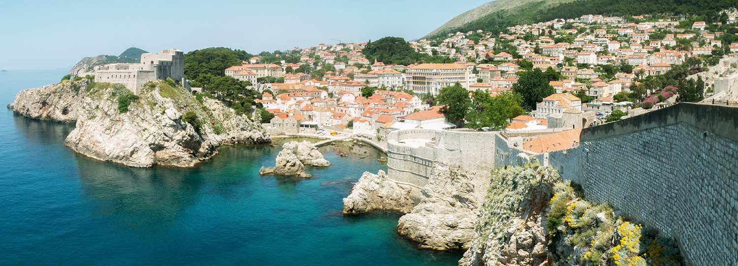 Vue panoramique depuis les remparts. A gauche la forteresse Lovrijenac, au centre la tour Bokar.