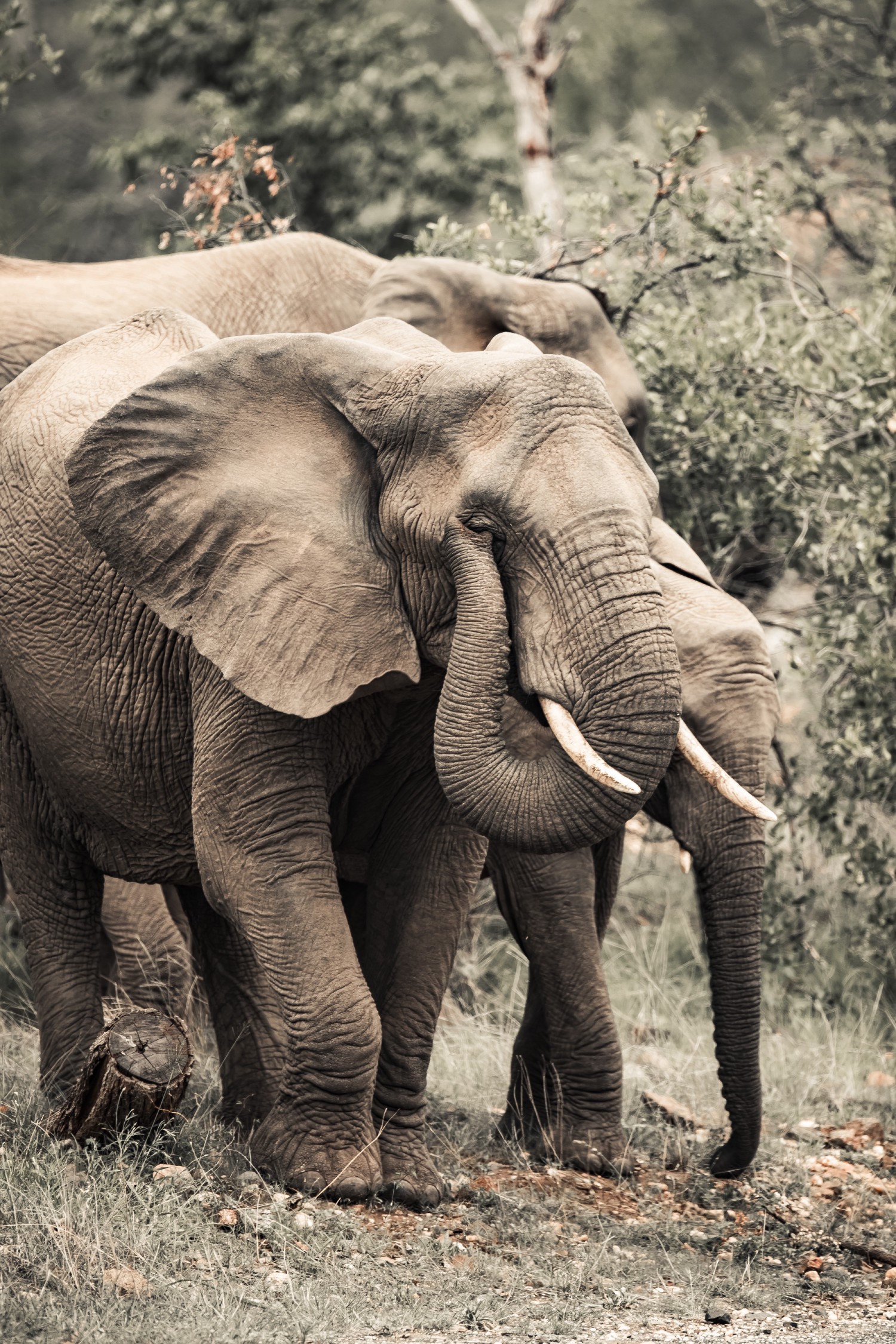 The African elephant is precocious. The nomadic life forces it to move very early. It starts walking right after birth and follows the group surrounded by adult elephants. Then, it starts to learn how to use its trunk. It is a very complex process. The first months, it does not really control its trunk but tries to catch grasses.