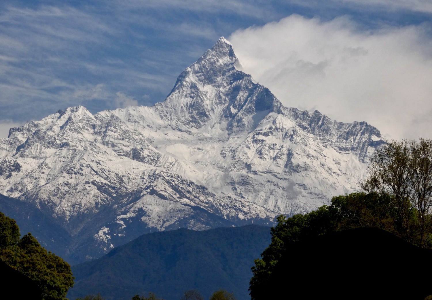 El monte es sagrado para los nepalies hinduistas creyentes y el Estado de Nepal no permite por ello el ascenso a esta montaña del Himalaya que acompaña a los cinco Anapurnas. Mide 6.993 metros y la palabra que lo identifica significa “cola de pez”