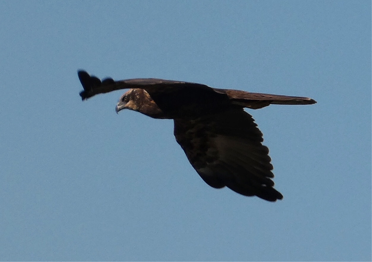 El vuelo de aguilucho lagunero occidental ( Circus aeruginosus )