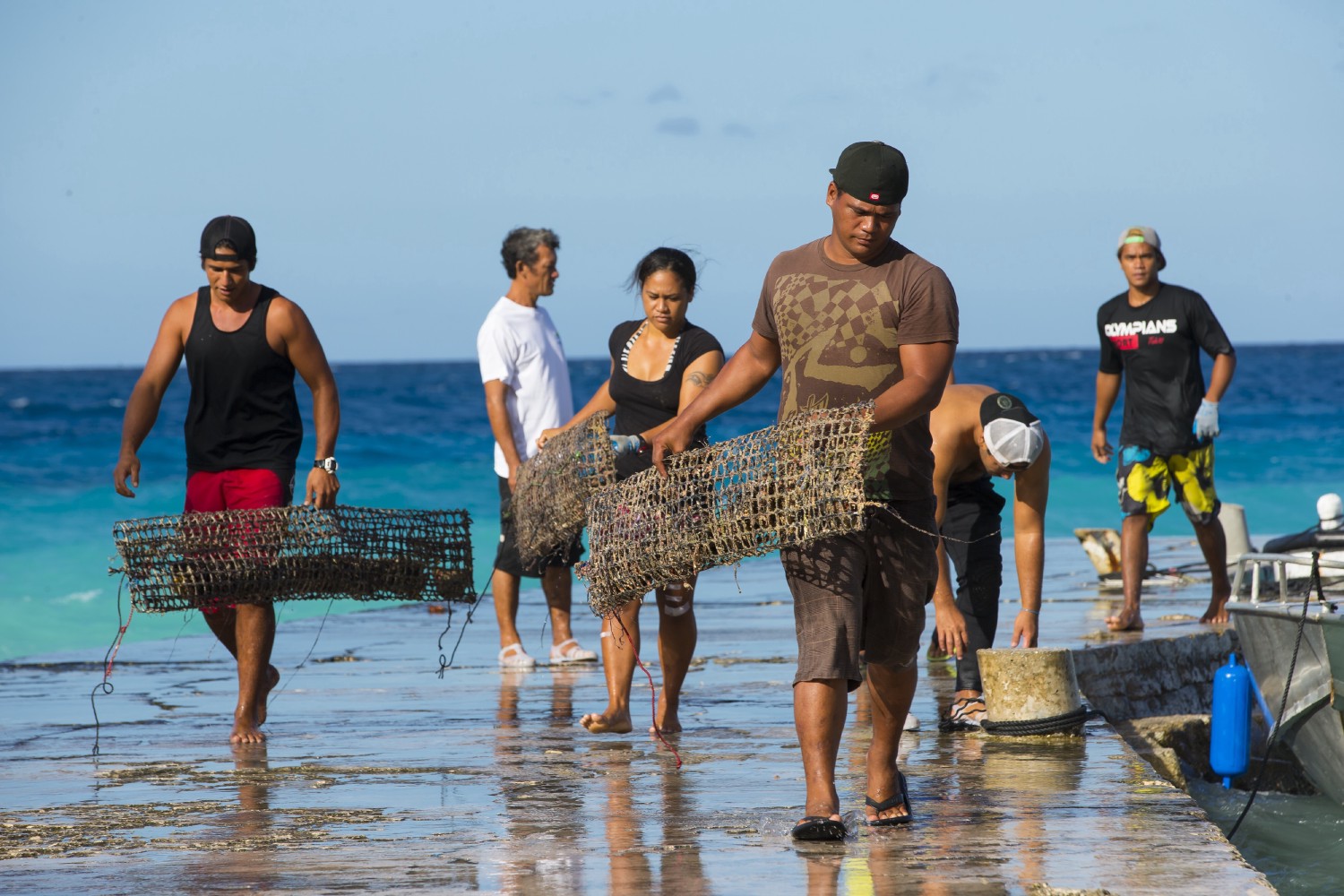 Rangiroa, like numerous Polynesian islands, has invested the pearl farming. Here, workers download oyster baskets arguably after the harvesting step.