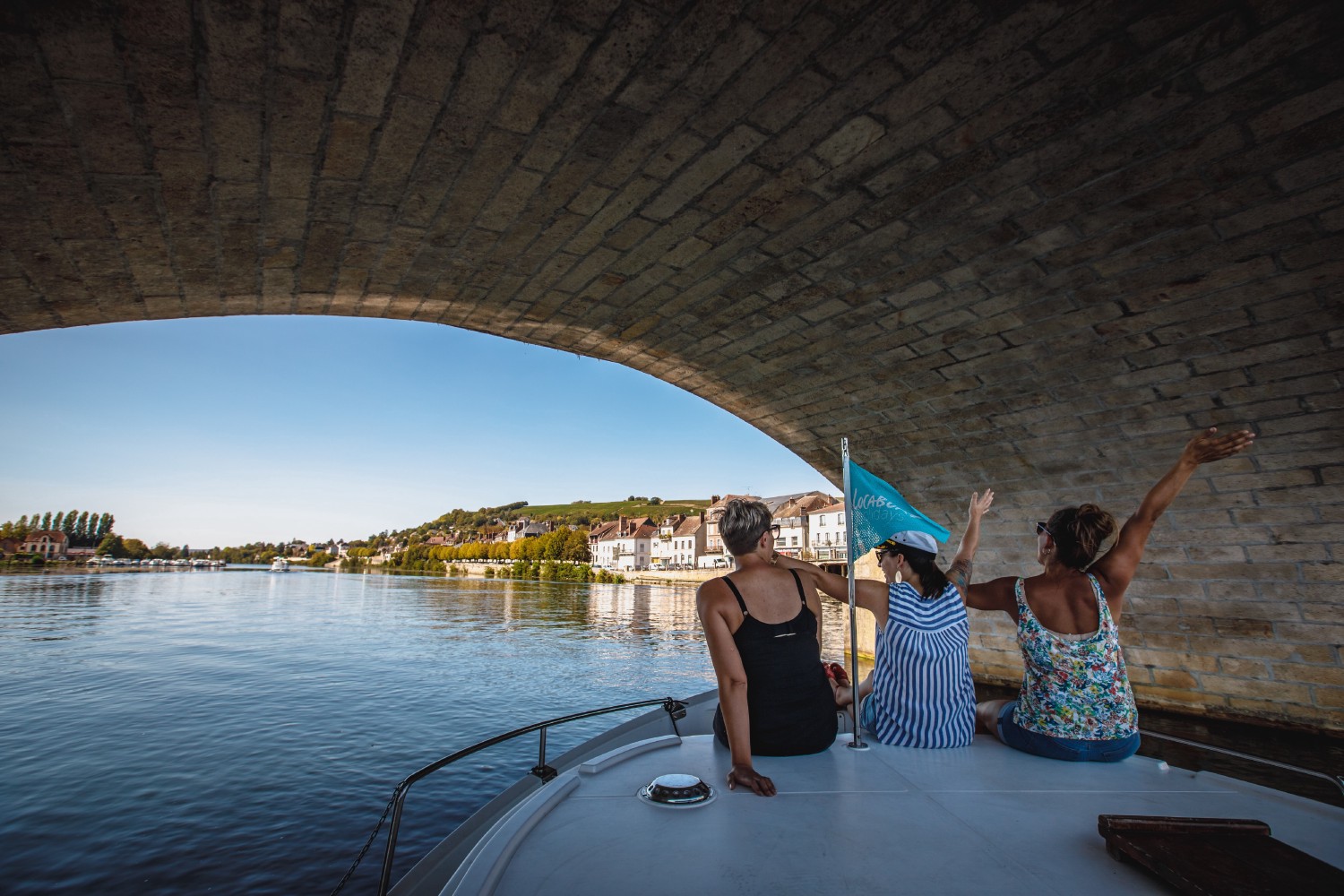 The 420 feet (128 m) long Saint-Nicolas bridge of Joigny connects the city's hospital center to its covered market. Today it has eight arches with different bends and unequal widths. These 19.6 feet (6.08 m) wide for the narrowest at the edge of the quay to 43.3 feet (13.20 m) for the widest in the center of the bridge arches allow for the largest of them the passage of tourist boats and the discovery of the city from the Yonne river.