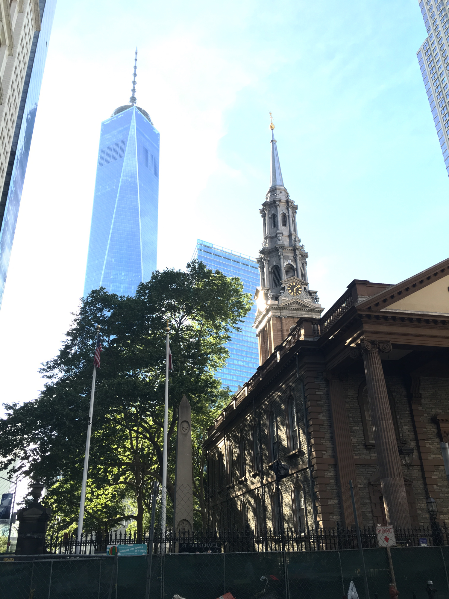 La Chapelle Saint Paul située au Nord de Wall Street offre une vision presque irréelle sur un New York de la démesure avec le One World Trade Center achevée en 2013 et cette petite chapelle datant de 1766.