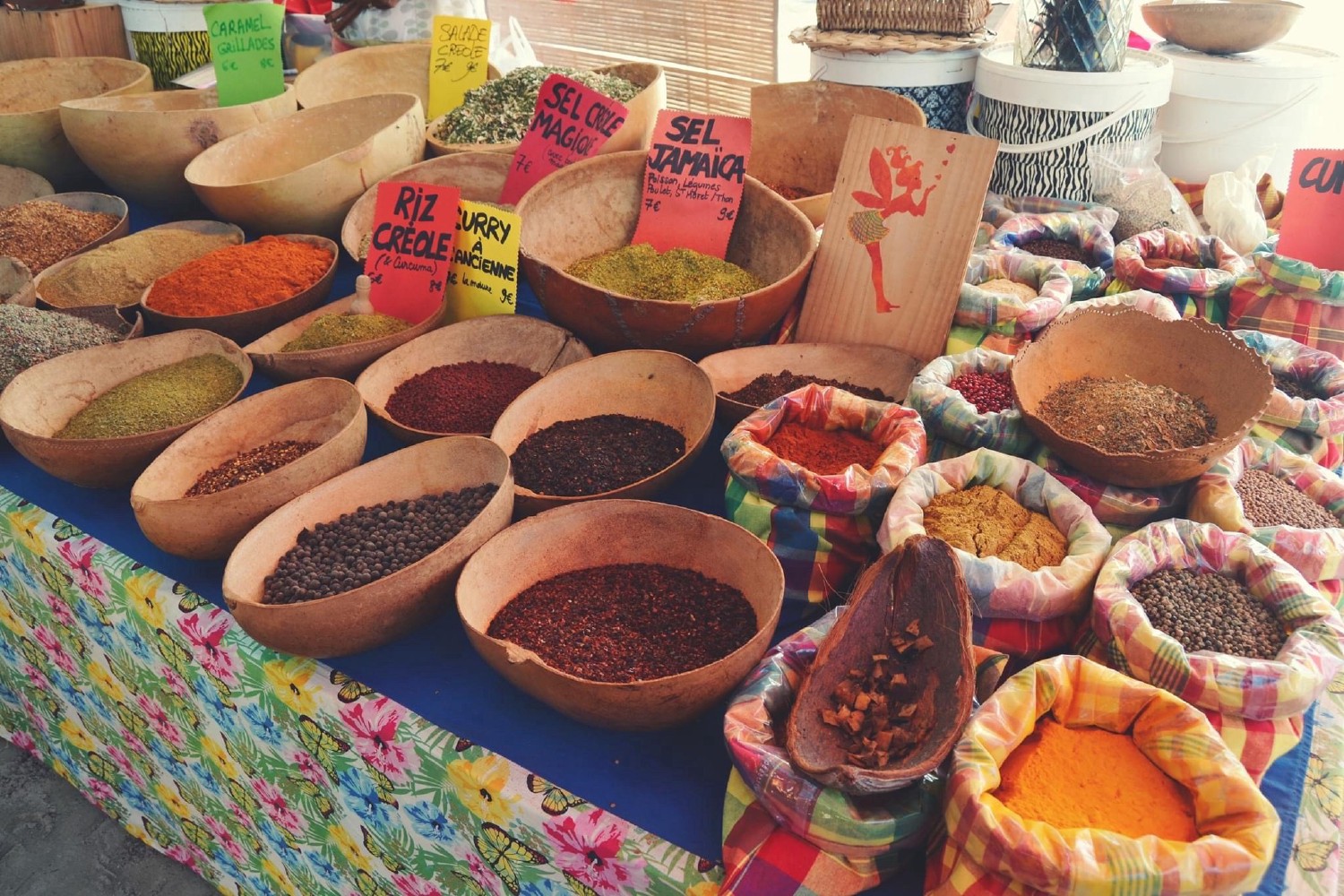 1er jour en Guadeloupe et petite balade au marché de St Anne. Heureuse de sentir et de pouvoir goûter à toutes ces délicieuses épices qui donnent très envie de cuisiner.