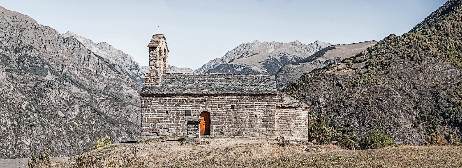Templo románico del s.XII ubicado a 1500 metros de altura en los Pirineos leridanos.