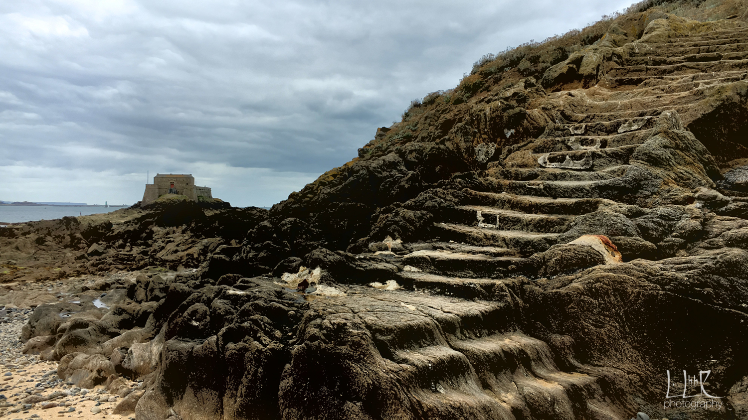 Escalier situé sur l’îlot du Grand-Bé, permettant de monter à son sommet et d’atteindre ainsi le tombeau de Chateaubriand.