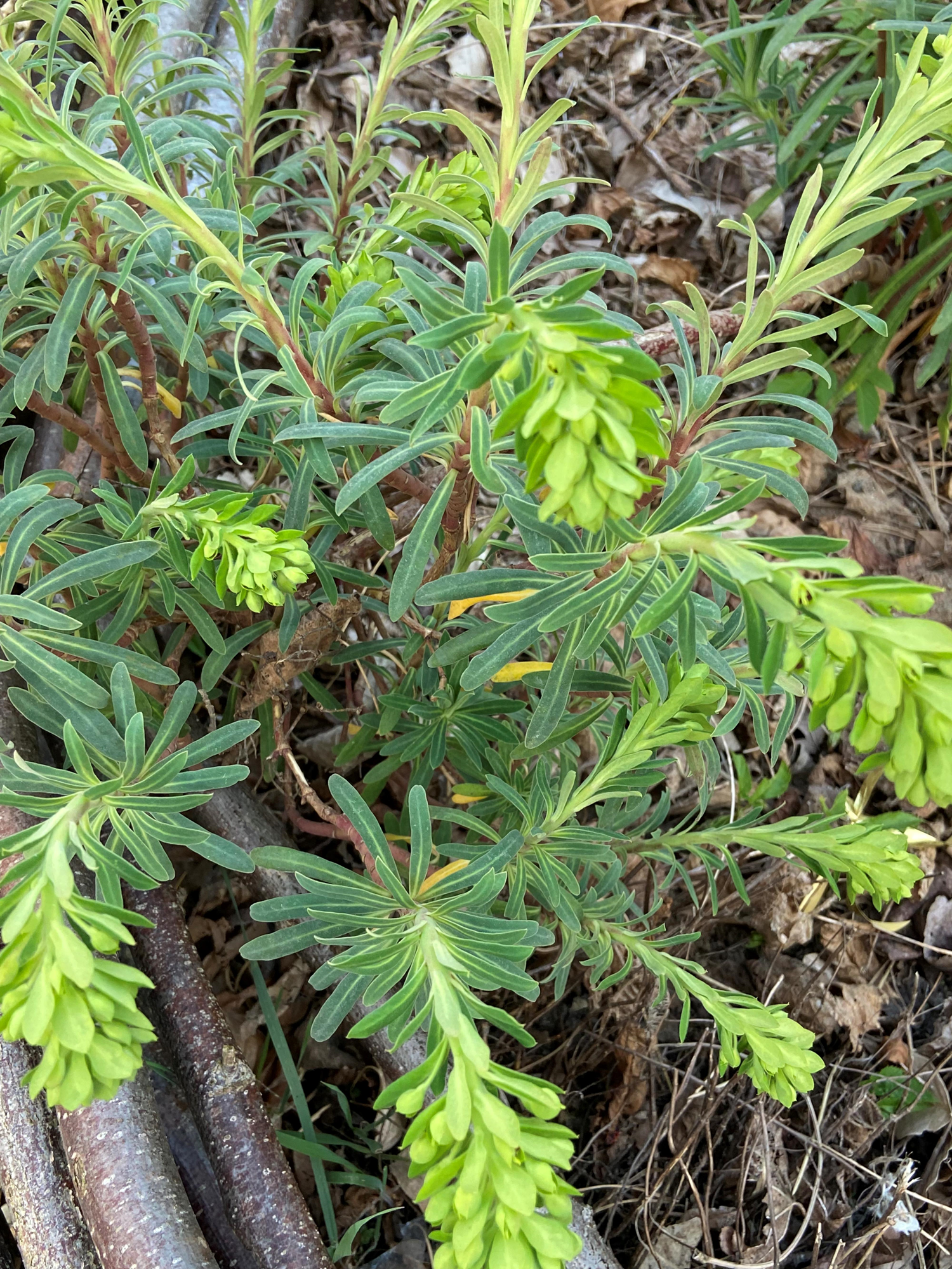 C’est une euphorbe méditerranéenne à tige ligneuse très ramifiée, à feuilles très allongées, persistantes.