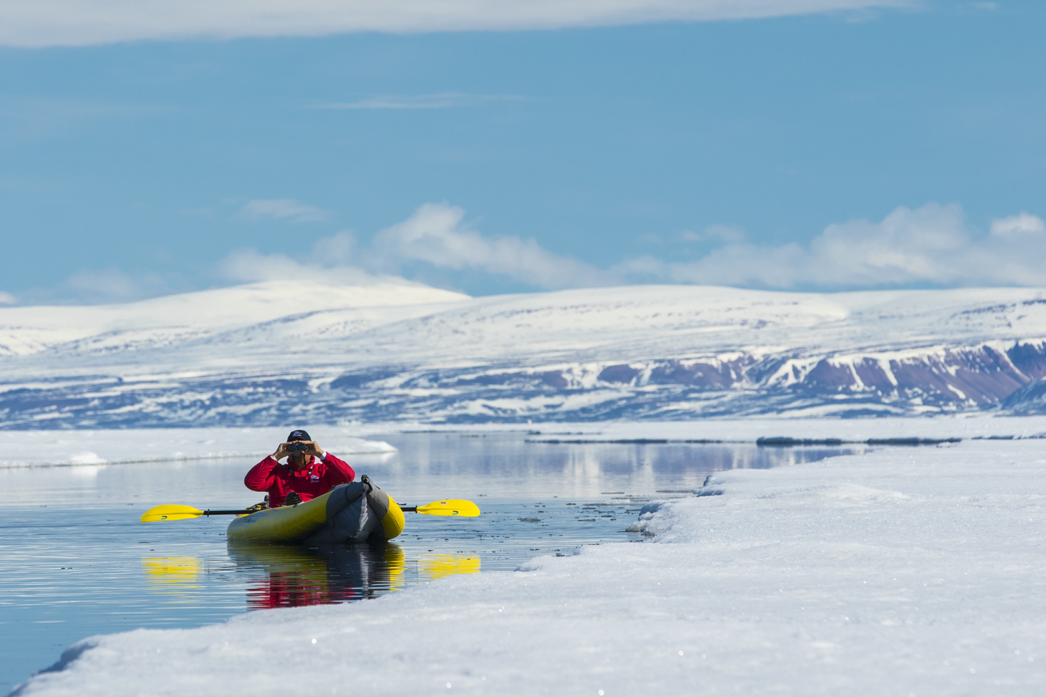 Open water areas develop as a result of spring ice break up and of marine currents and winds movements. The word kayak (qajak) comes from Inuit language and means the man's boat or the hunter's boat. First kayaks were made from seal skins stretched over a wooden structure (umiak).