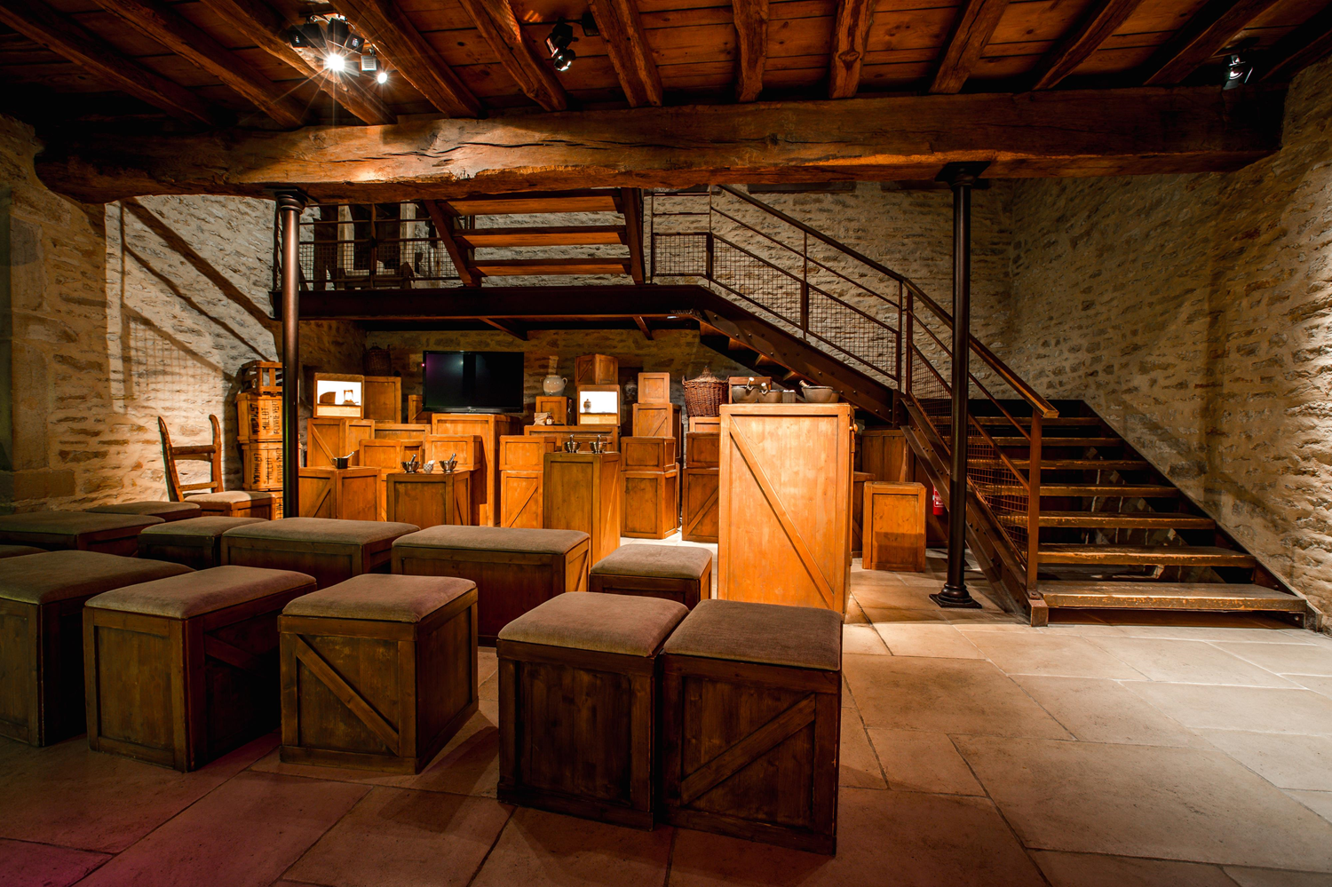 After visiting the museum space of the Edmond Fallot mustard factory in Beaune in the Côte-d'Or department, the 40,000 annual visitors can try their hand at making mustard themselves in a space dedicated to this experiment. The various ingredients - Brassica Juncea Czem and Cosson brown mustard seeds, vinegar, salt - are available to them as well as a number of mortars and pestles visible here. The pestles allow crushing the mustard seeds in the mortars. Mixed with vinegar, they turn into a paste that should ideally be left to rest for at least a day to reduce its bitterness.