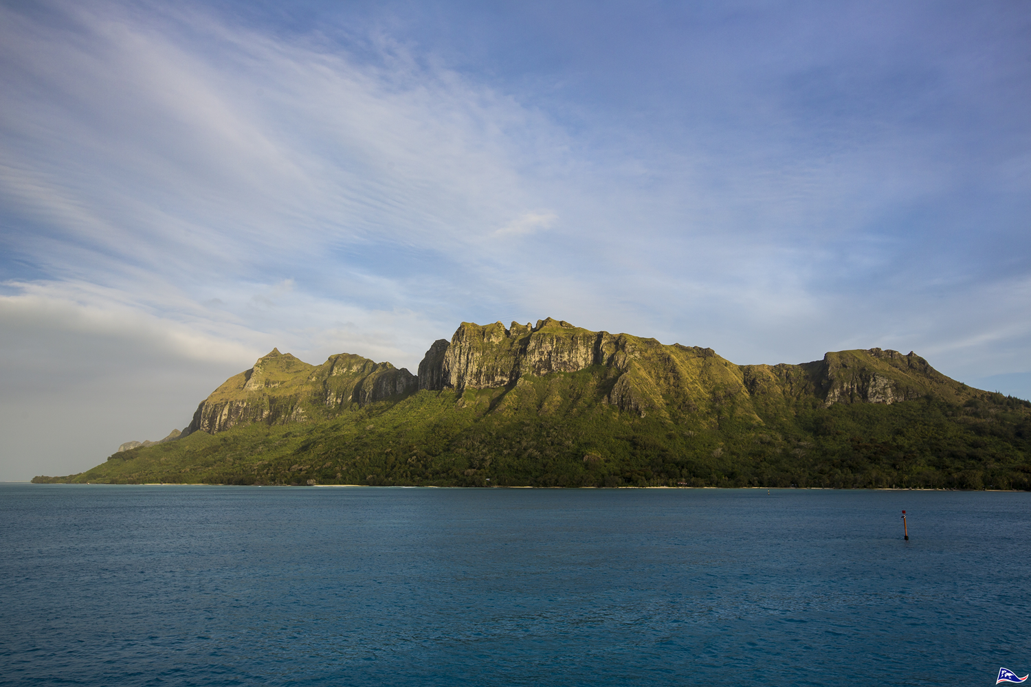 These abrupt cliffs, diving into the ocean are those of Mount Hiro, the culminating point of Raivavae.