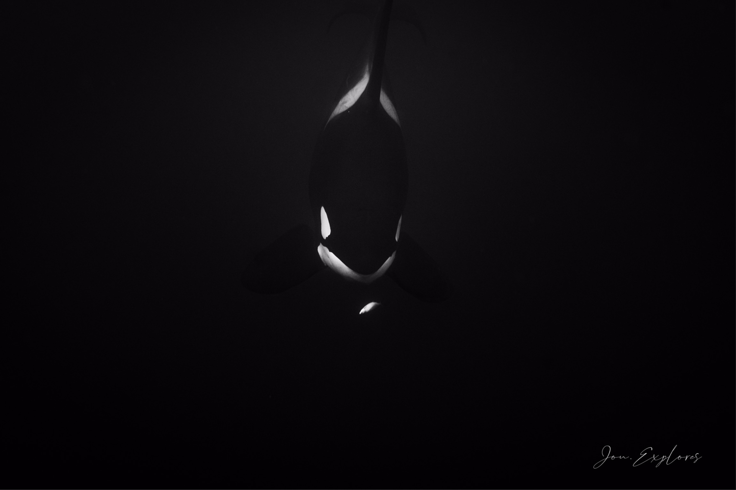 Une fois mangé cette orque passe sous mes palmes avant de disparaître à nouveau dans la noirceur des fjords.