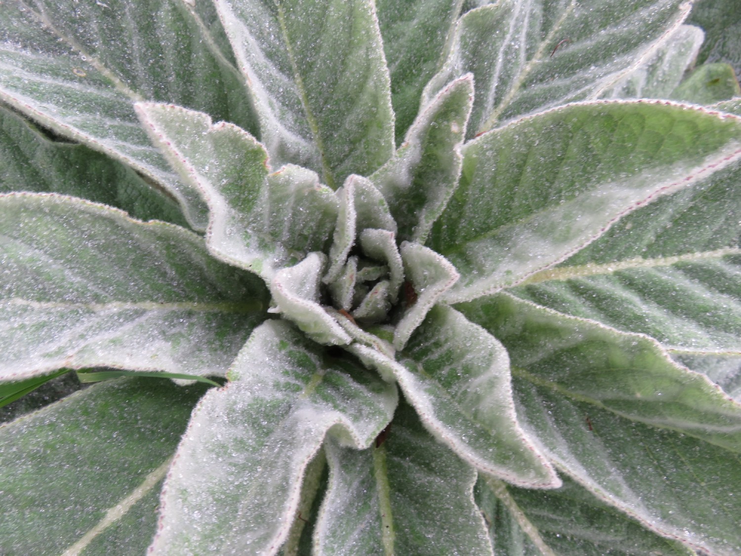 Feuilles duveteuses du Verbascum thapsus (Molène)