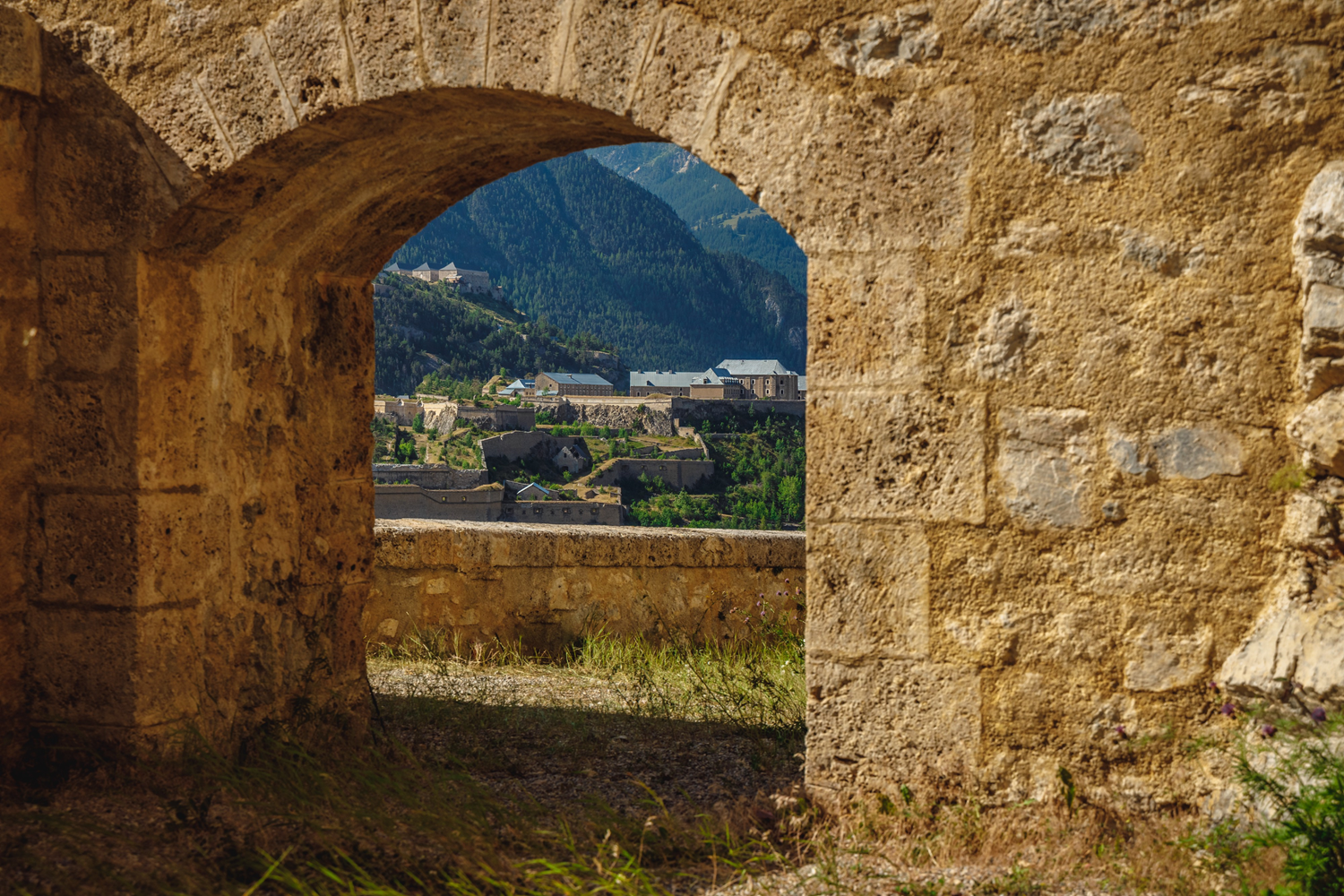 This view from the Salettes redoubt looks over Fort des Têtes whose construction began in 1721. One can clearly see its facades and roofs designed by Vauban and listed as Historical Monuments in 1989. The site, abandoned in 1945, was used for military training until 1989 before being inscribed on the UNESCO World Heritage List in 2008.