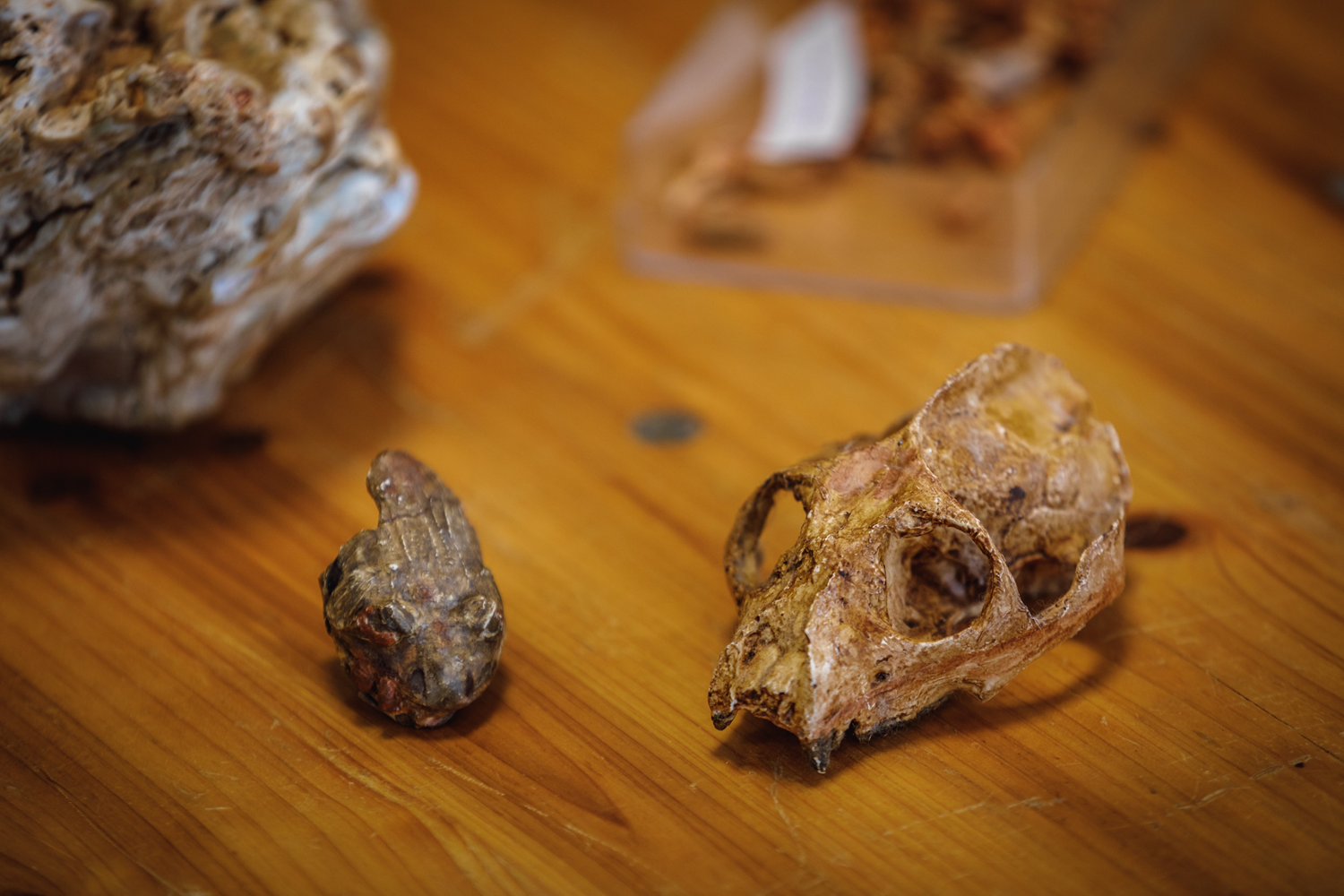 During the time of the phosphate mines, diggers excavated numerous fossils of significant size. Today, paleontologists find rather small specimens there. Sometimes infra-millimeter small fossils, little piles of bones, insects, seeds, etc.