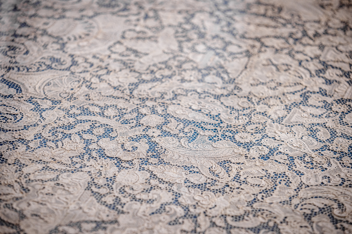 A needle lace, Alençon lace is the most famous French lace. Its fame dates back to the creation by Colbert in 1665 of a royal factory in the Norman town of Alençon to put an end to lace imports from Venice. The decree that established the factory stipulated that the lace to be manufactured there would bear the name of Point de France, even if, in the beginning, they were content to imitate the Point de Venice and took up the technique taught by Venetian experts. Over time, the Alençon lacemakers developed their own style and gradually abandoned the bridle bottoms linking the floral motifs characteristic of the Point de Venice in favor of the small, lighter, and almost round curly stitches of the current Point d'Alençon.
