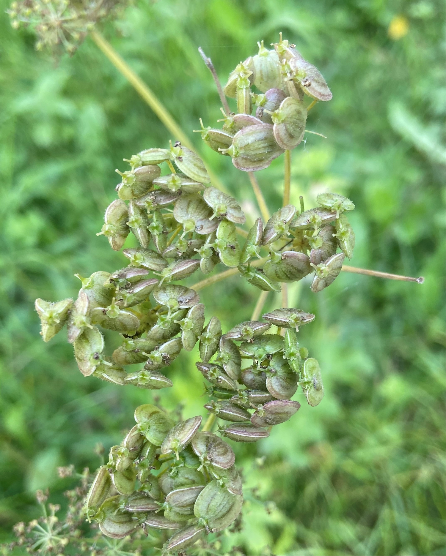 Les fruits de la Grande Berce sont des di-akènes composés de 2 graines accolées, légèrement déprimés au sommet et munis d’une aile.