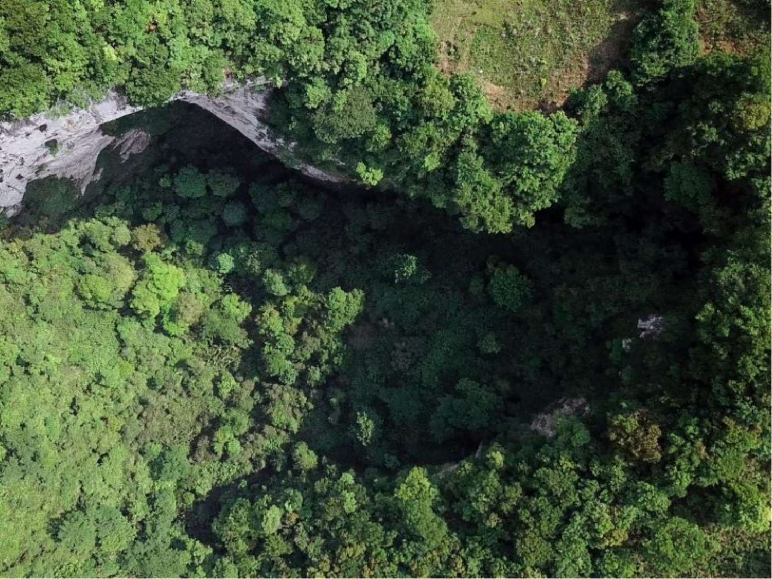 The Xiaozhai Tiankeng, also known as tiānkēng (天坑), "celestial pits of Xiaozhai", is the deepest chasm in the world. This geological phenomenon, known as a doline, is formed by the erosion of limestone when water seeps into the ground and causes underground cavities to appear. When the ceiling of a cavity becomes too thin, it collapses, forming a depression in the ground. This hole is 192 metres deep, 306 metres long and 150 metres wide. That's a volume of over five million cubic metres! In addi