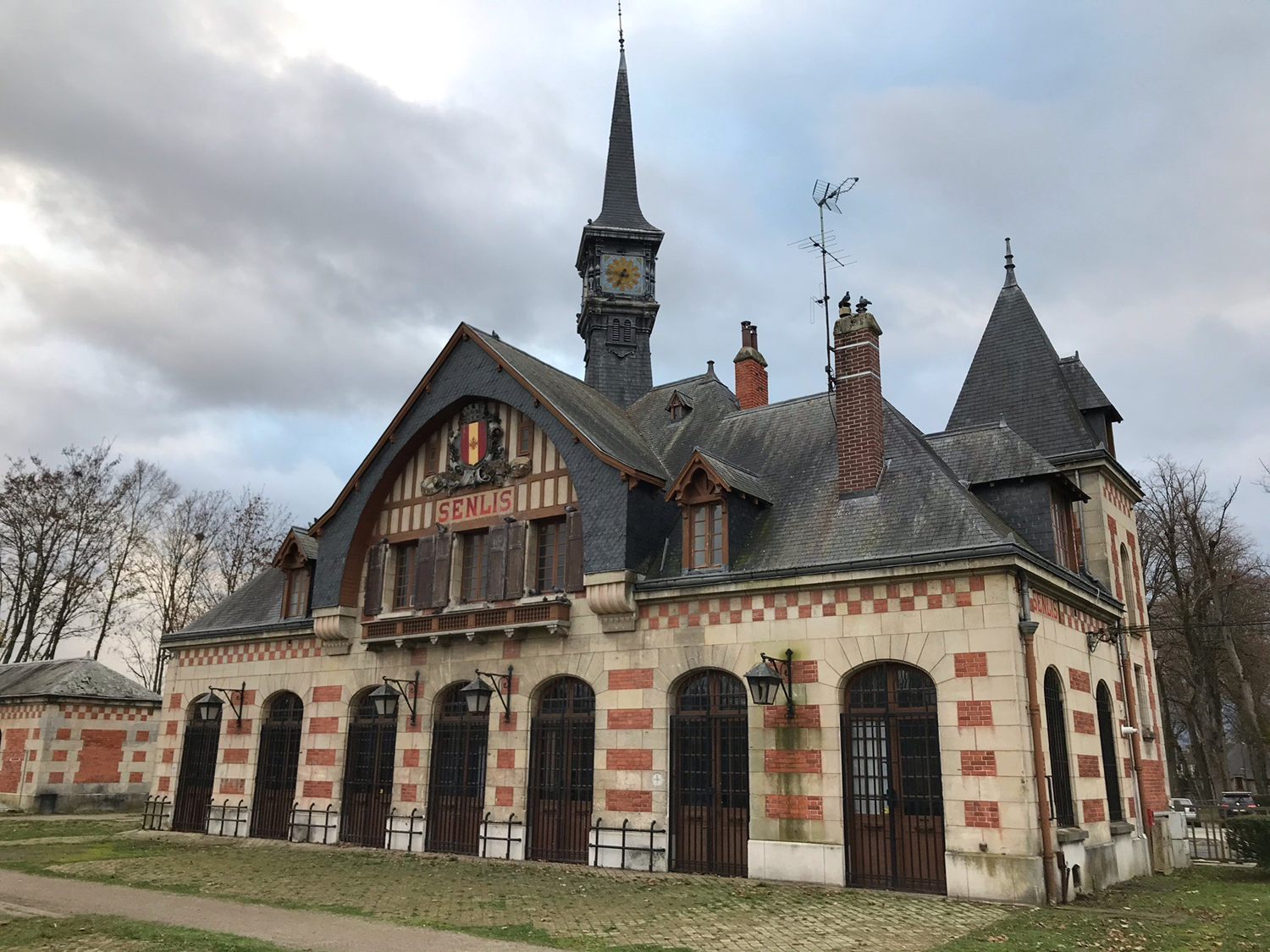 Façade arrière de l ancienne gare SNCF de Senlis ( Oise ). Aujourd’hui, elle est devenue une gare ... routière.