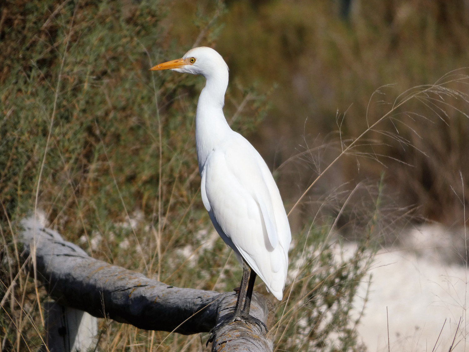 Es un ave esbelta, no de mucho tamaño,cuando no está en época de cría tiene un plumaje blanco, si está en época de apareamiento adquiere tonos dorados y amarillentos por su cuello y pecho. A su vez tiene el pico amarillo, y sus patas tienen tonalidades también amarillas y pero muchas veces son grisáceas.