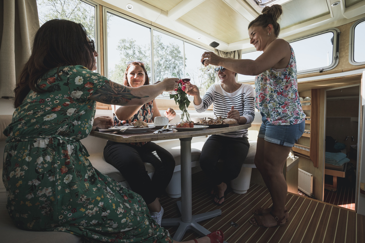 During the time spent with friends on the barges of the river Yonne, between two locks, the tasting of all the Burgundy specialties is a must. Cheeses, bread, pâtés, meat, the famous boeuf bourguignon, snails, are some of the local dishes that can be experienced. These local dishes can be tasted with the most delicate wines.