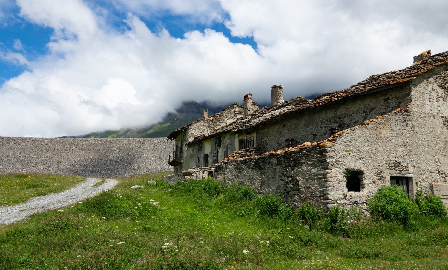 C'est le seul village de l'ancien Mont-Cenis à avoir évité la noyade par le barrage. Il est perché à 1 880 m d'altitude, au pied du barrage du Mont Cenis.A l'exception de la chapelle Notre-Dame des Neiges (1626) restaurée en 1992, tous les autres bâtiments de Grand'Croix sont restés à l'abandon donnant au village son aspect fantôme singulier et assez pittoresque.