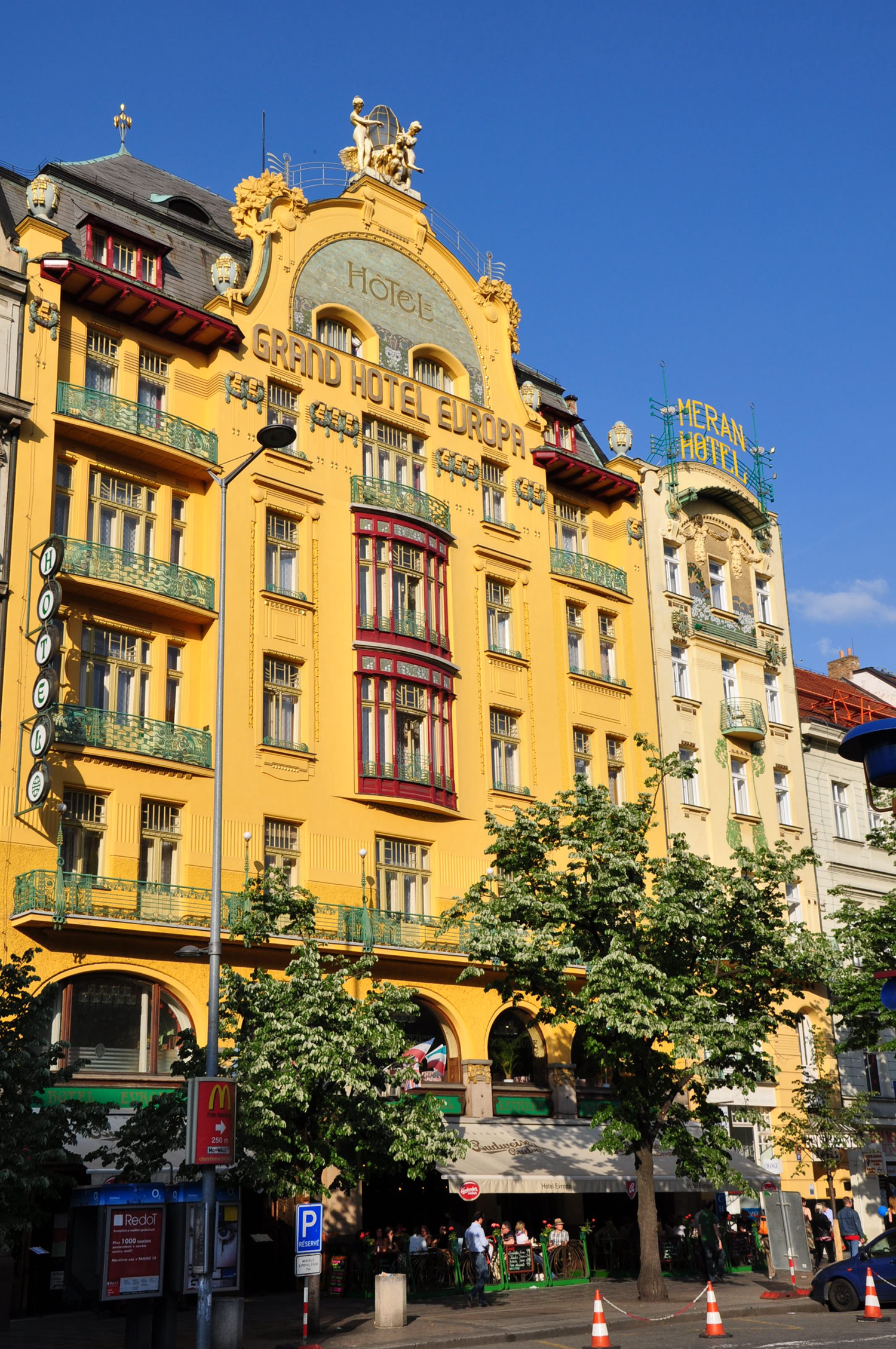 Cet hôtel a été reconstruit en 1905 dans le style Art nouveau par Quido Bělský, constructeur, Bedřich Bendelmayer, Alois Dryák, Bohumil Hypšman et Jan Letzel, artistes de qualité, sur l'artère principale de Prague.