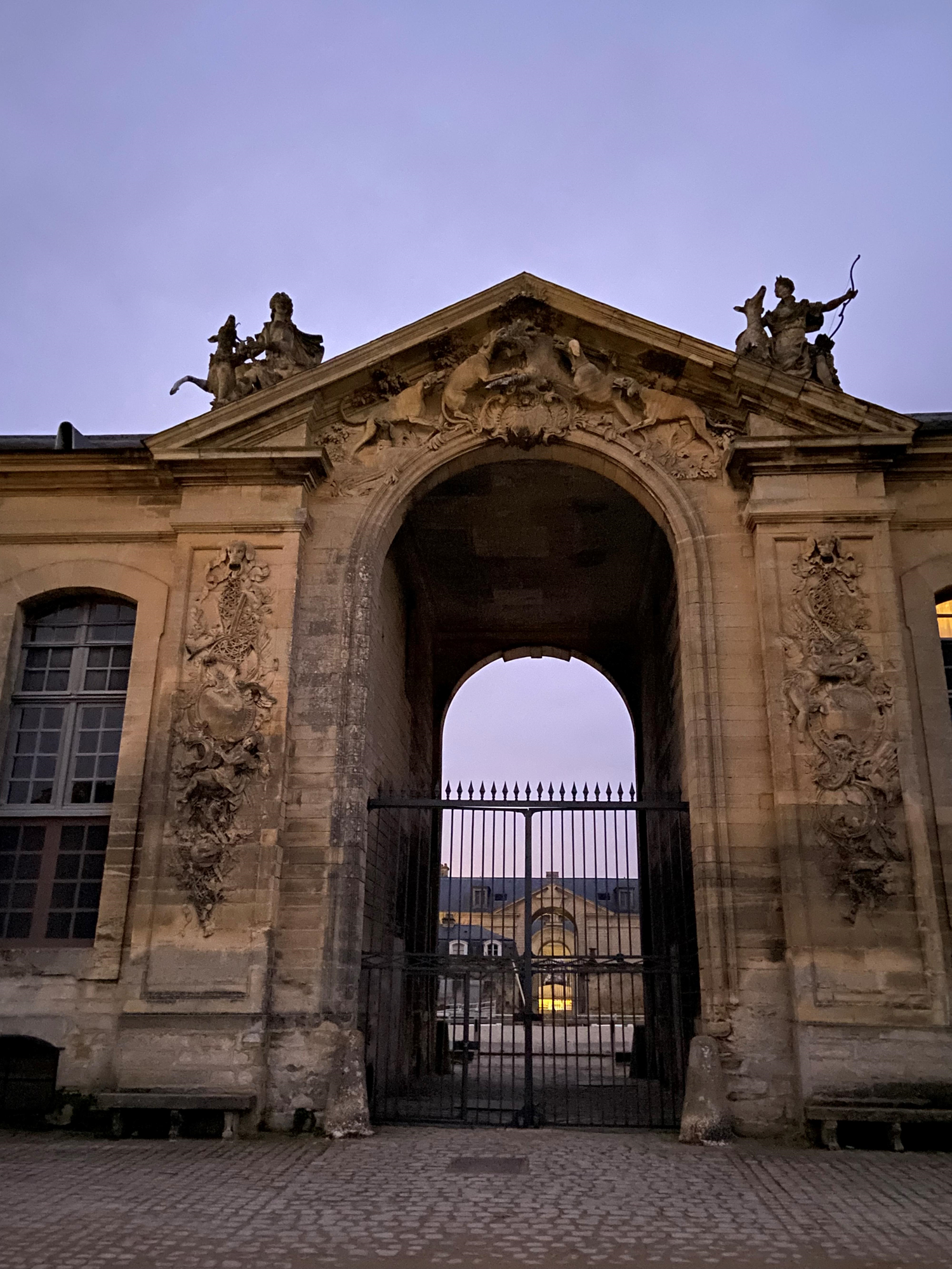 Entrée Ouest des Grandes Écuries, chef d’œuvre architectural du 18ème siècle construite pour le 7ème Prince de Condé, Louis-Henri de Bourbon.