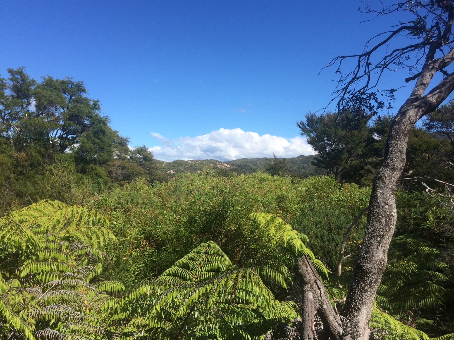 Various shades of green are prevailing when looking over the vegetation in the Abel Tasman National Park.