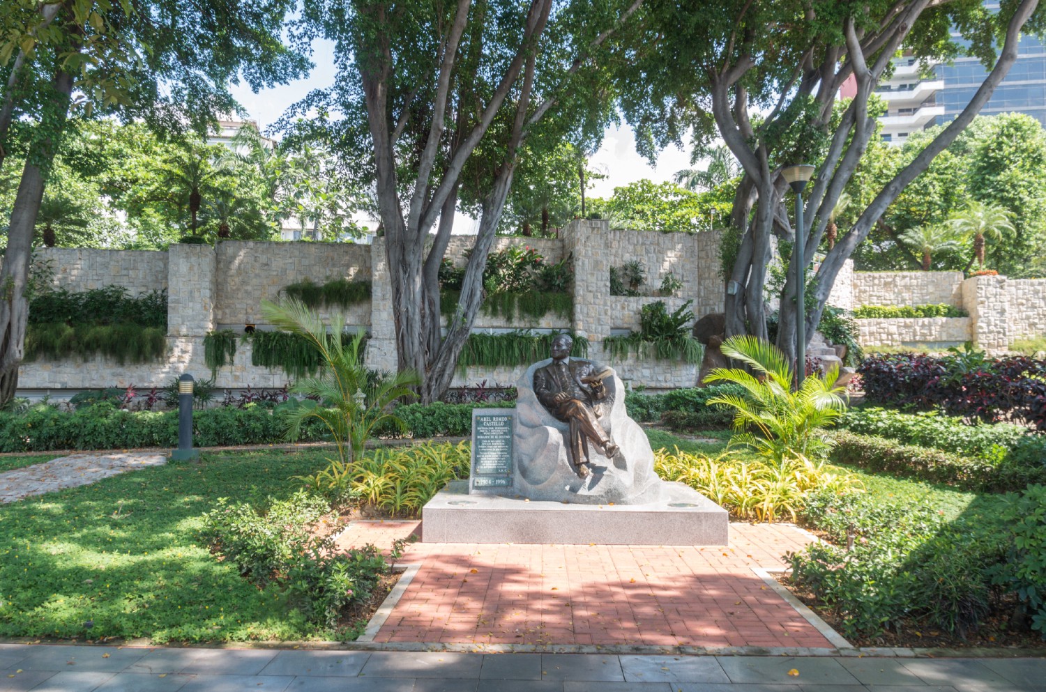 Statue d'Abel Romeo Castillo (1904-1996) dans les jardins de la jetée Simon Bolivar.
