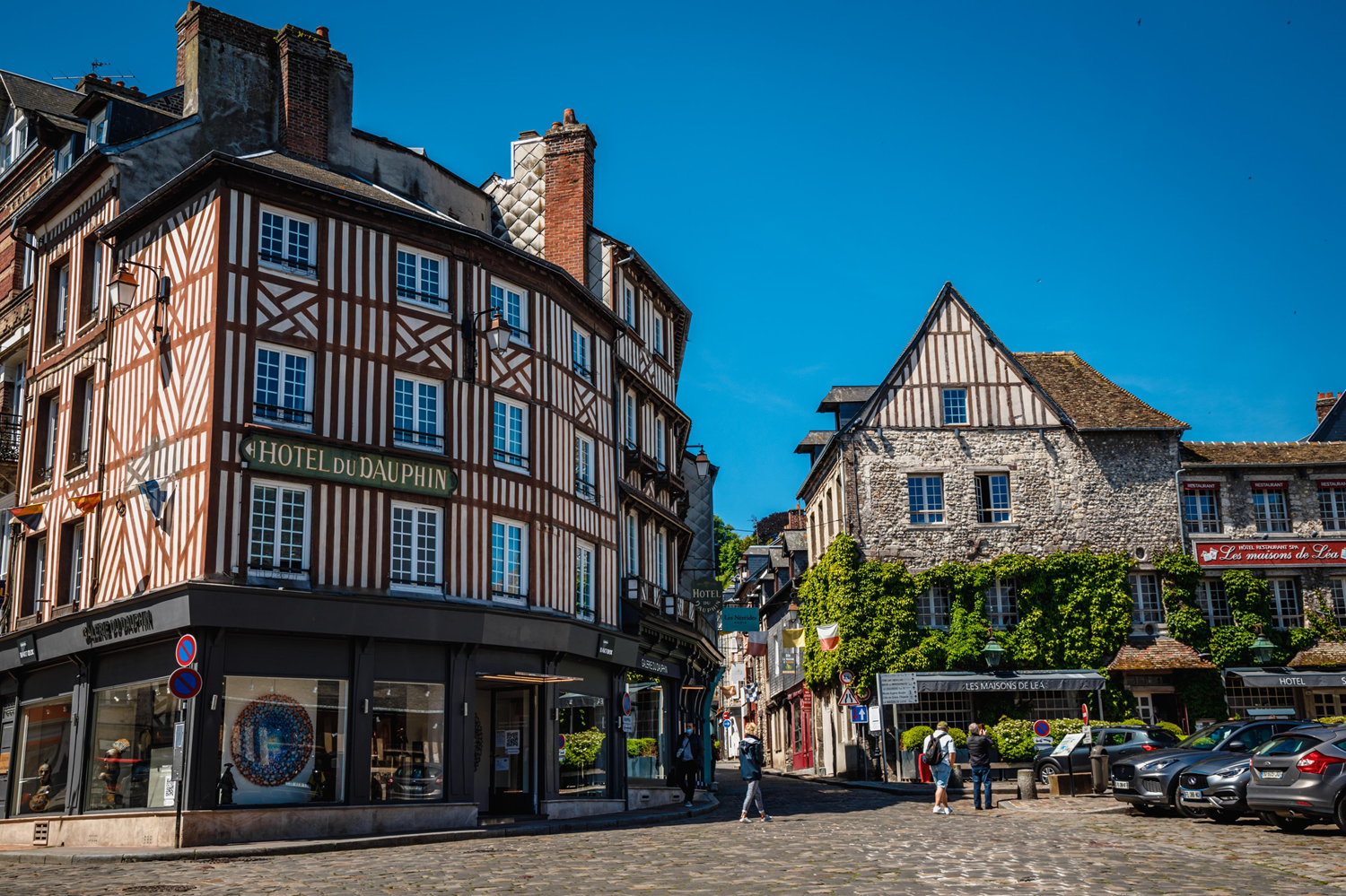 The half-timbered houses of the historic center of Honfleur are numerous and bear witness to traditional Norman architecture. They consist of an oak frame and straw, lime, and earth filling that stiffens the walls. Initiated in the Middle Ages, many have disappeared in fires. Those of the Renaissance remain and are sometimes equipped with a corbelling. It allowed adding stages and increasing the living area. The ground floor was sometimes made of stones.