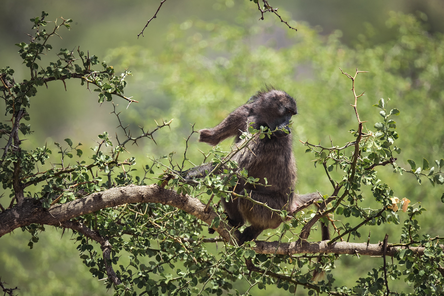 An injured or disabled baboon is unlikely to survive in the wild. It is also an easier prey for predators. In group movements, the dominant male, the females and their offspring as well as the weaker individuals are surrounded by adults and peripheral males that circle them for protection.