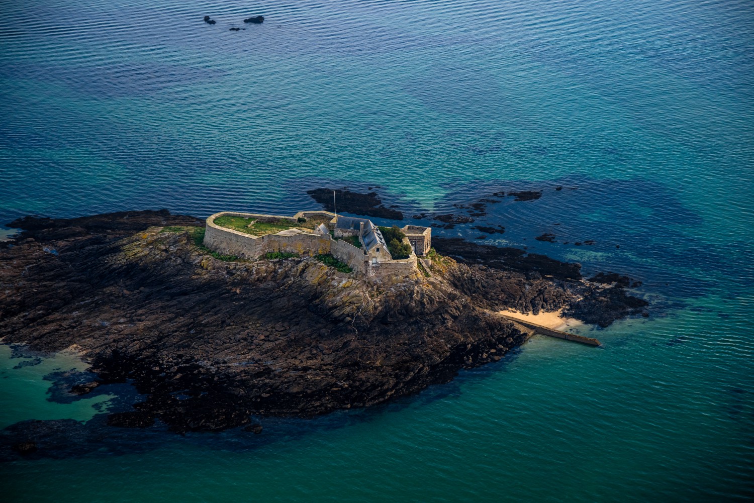 Harbour Island is a fortified rocky island of 18 hectares located off the coast of Dinard, 3 km west of Saint-Malo. Its fort is part of the Malouin defensive system planned by Vauban in the 17th century. At war with the League of Augsburg, Louis XIV wanted to protect France’s leading commercial port from English incursions. The role of Fort Harbour was to close off two western access routes to Saint-Malo and to crossfire with the forts of La Conchée, Petit Bé and the Fort National. Privately owned, the island is closed to the public and was once owned by Alain Delon. Harbour Island and its fort have been classified as historical monuments since 1952.