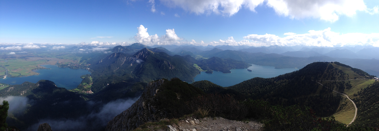 Herzogstand Panorama Kochelsee und Walchensee (klick on the picture to expand panorama foto)