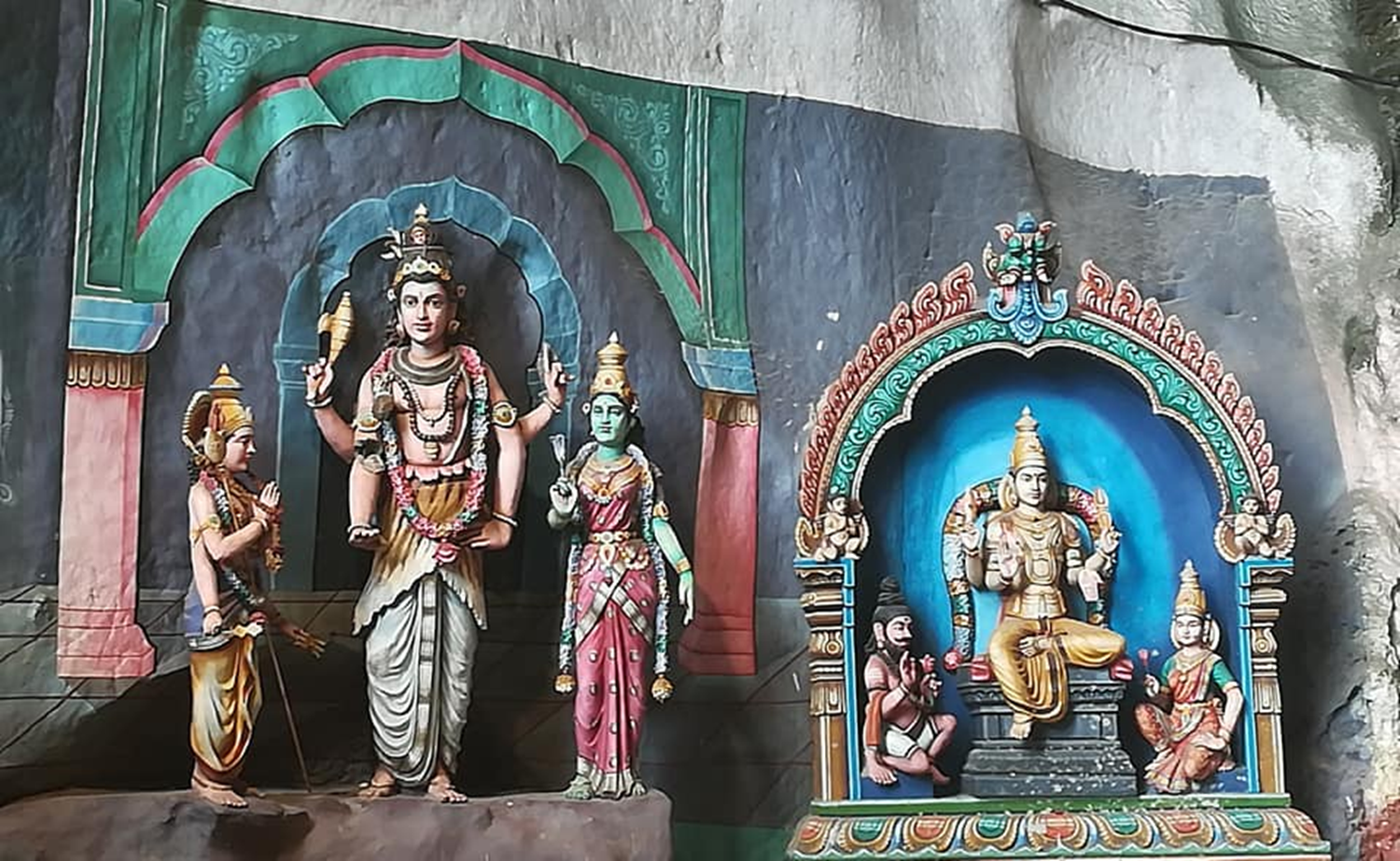 Détail dans le temple des Batu Caves, très coloré. On atteint la grotte après une montée de 272 marches